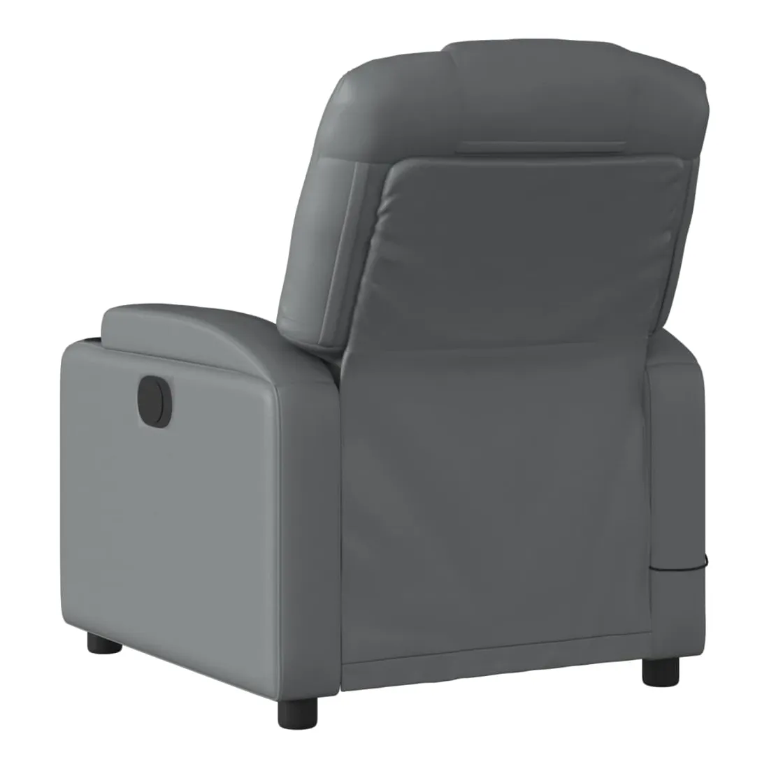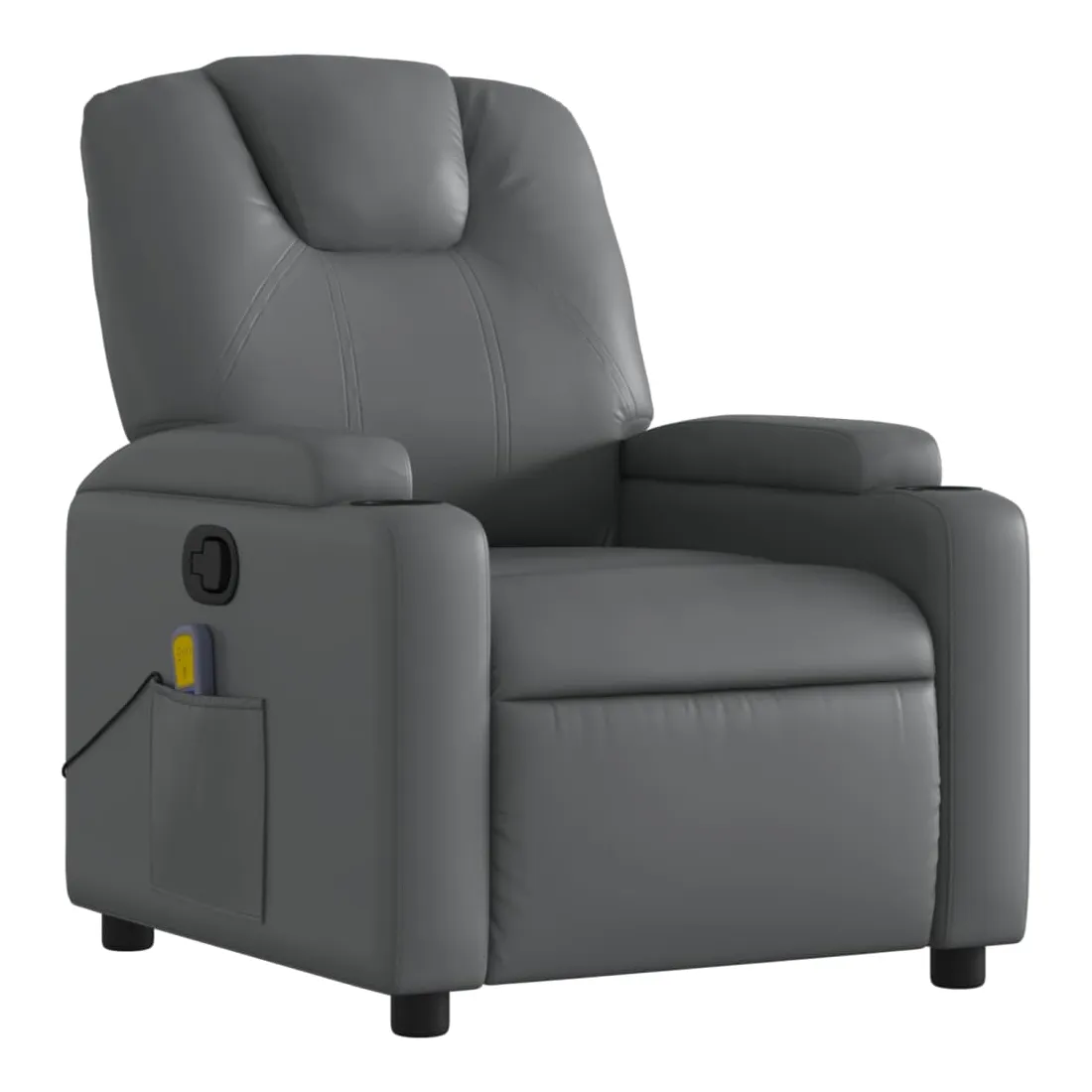 Asseyez-vous et détendez-vous dans ce fauteuil inclinable de massage très confortable ! Fonction d'inclinaison manuelle : ce fauteuil inclinable est doté d'un bouton du côté droit. Vous pouvez régler manuellement le repose-pieds et le dossier dans n'importe quelle position selon votre confort en tirant simplement sur la poignée. Cette fonction permet une inclinaison maximale de 135 degrés. De plus, le dossier peut revenir rapidement à sa position d'origine en tirant simplement sur la poignée.Fonction de vibration : les 6 points de massage vous permettent de faire l'expérience d'un massage mieux ciblé. De plus, la télécommande incluse vous permet de choisir différents programmes de massage. La fonction de massage est alimentée par le connecteur USB, mais la source d'alimentation USB 5V certifiée n'est pas incluse.Expérience de siège confortable : le siège, le dossier et les larges accoudoirs rembourrés épais recouverts de similicuir procurent une sensation confortable, vous faisant vous sentir enlacé lorsque vous êtes assis. Le similicuir est un matériau très résistant. Il est résistant aux taches, ce qui le rend facile à nettoyer avec un chiffon humide. La surface lisse donne également un aspect luxueux et la beauté du cuir véritable.Porte-gobelets et poche latérale pratiques : ce fauteuil dispose de deux porte-gobelets pratiques pour vos boissons et d'une poche latérale pour votre télécommande ou pour garder vos objets essentiels à portée de main.Cadre solide et stable : le cadre en bois et en métal offre une structure solide et une grande stabilité. Ce fauteuil inclinable est confortable et durable.