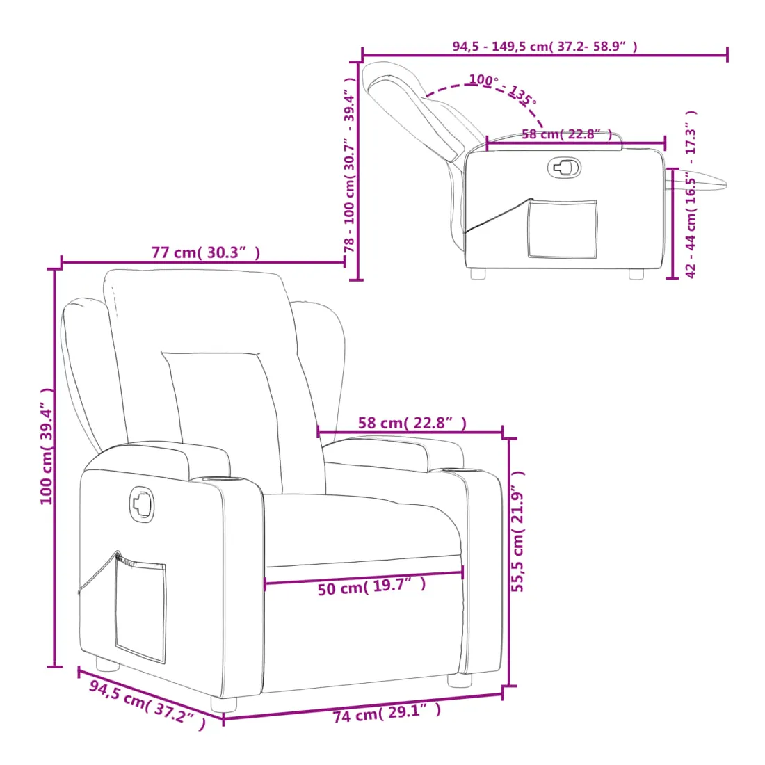 - Dimensions assise : 77 x 94,5 x 100 cm (l x P x H)