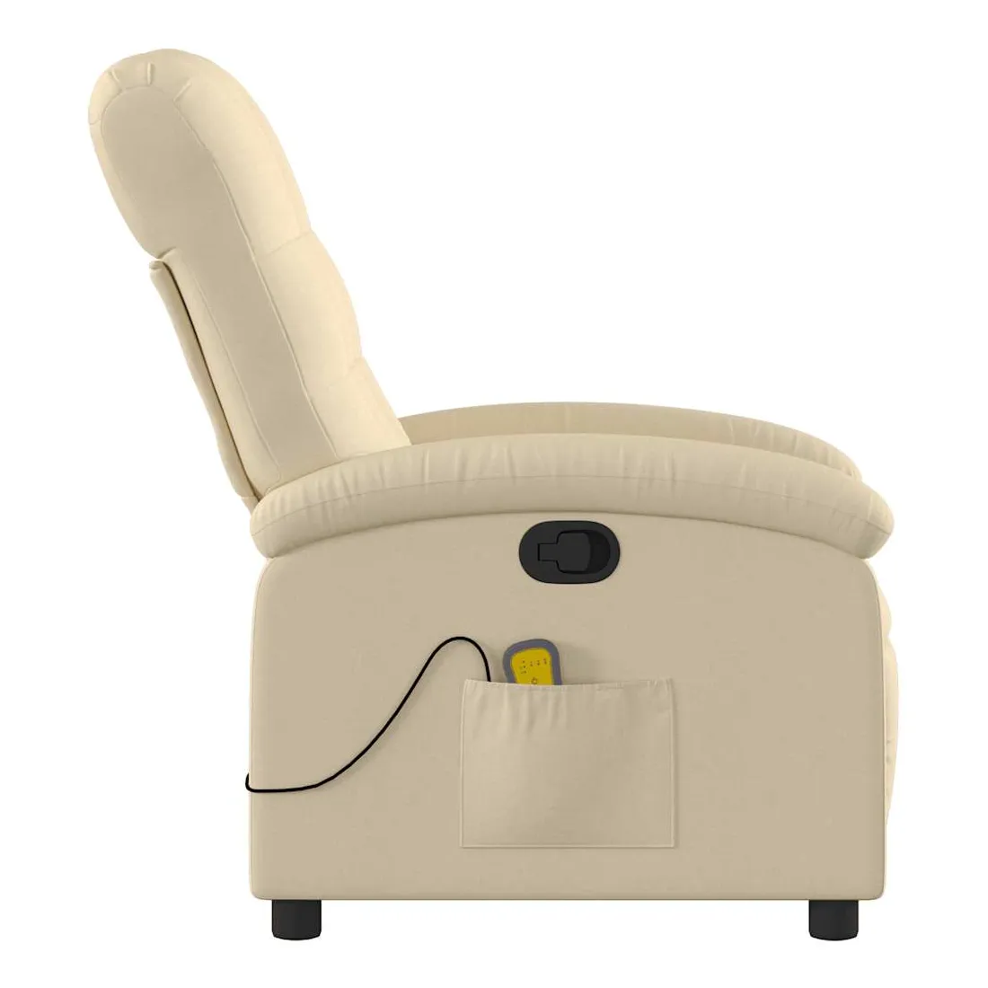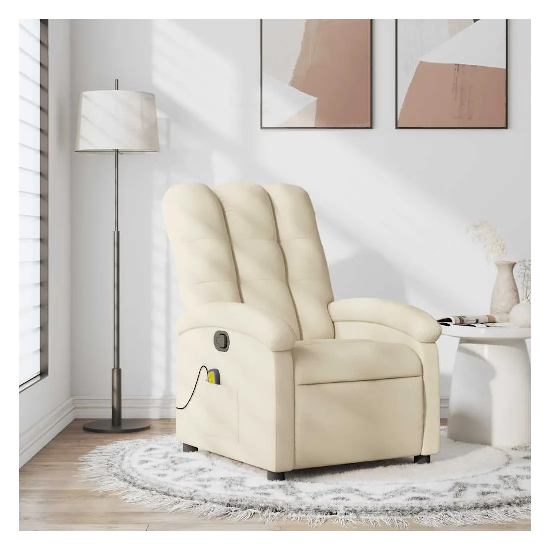 Asseyez-vous et détendez-vous dans ce fauteuil inclinable de massage très confortable ! Fonction d'inclinaison manuelle : ce fauteuil inclinable est doté d'une poignée du côté droit. Vous pouvez régler manuellement le repose-pieds et le dossier dans n'importe quelle position selon votre confort en tirant simplement sur la poignée. Cette fonction permet une inclinaison maximale de 135 degrés. De plus, le dossier peut revenir rapidement à sa position d'origine en tirant simplement sur la poignée.Fonction de vibration : les 6 points de massage vous permettent de faire l'expérience d'un massage mieux ciblé. De plus, la télécommande incluse vous permet de choisir différents programmes de massage. La fonction de massage est alimentée par le connecteur USB, mais la source d'alimentation USB 5V certifiée n'est pas incluse.Expérience d'assise confortable : le siège, le dossier et les larges accoudoirs bien rembourrés recouverts de tissu procurent une sensation confortable et chaleureuse, vous permettant de vous sentir enveloppé lorsque vous êtes assis. Le tissu présente un aspect simple et épuré et est respirant et durable.Poche latérale pratique : ce fauteuil est doté d'une poche latérale pour ranger votre télécommande ou garder vos objets essentiels à portée de main.Cadre solide et stable : le cadre en bois et en métal offre une structure solide et une grande stabilité. Ce fauteuil inclinable est confortable et durable.