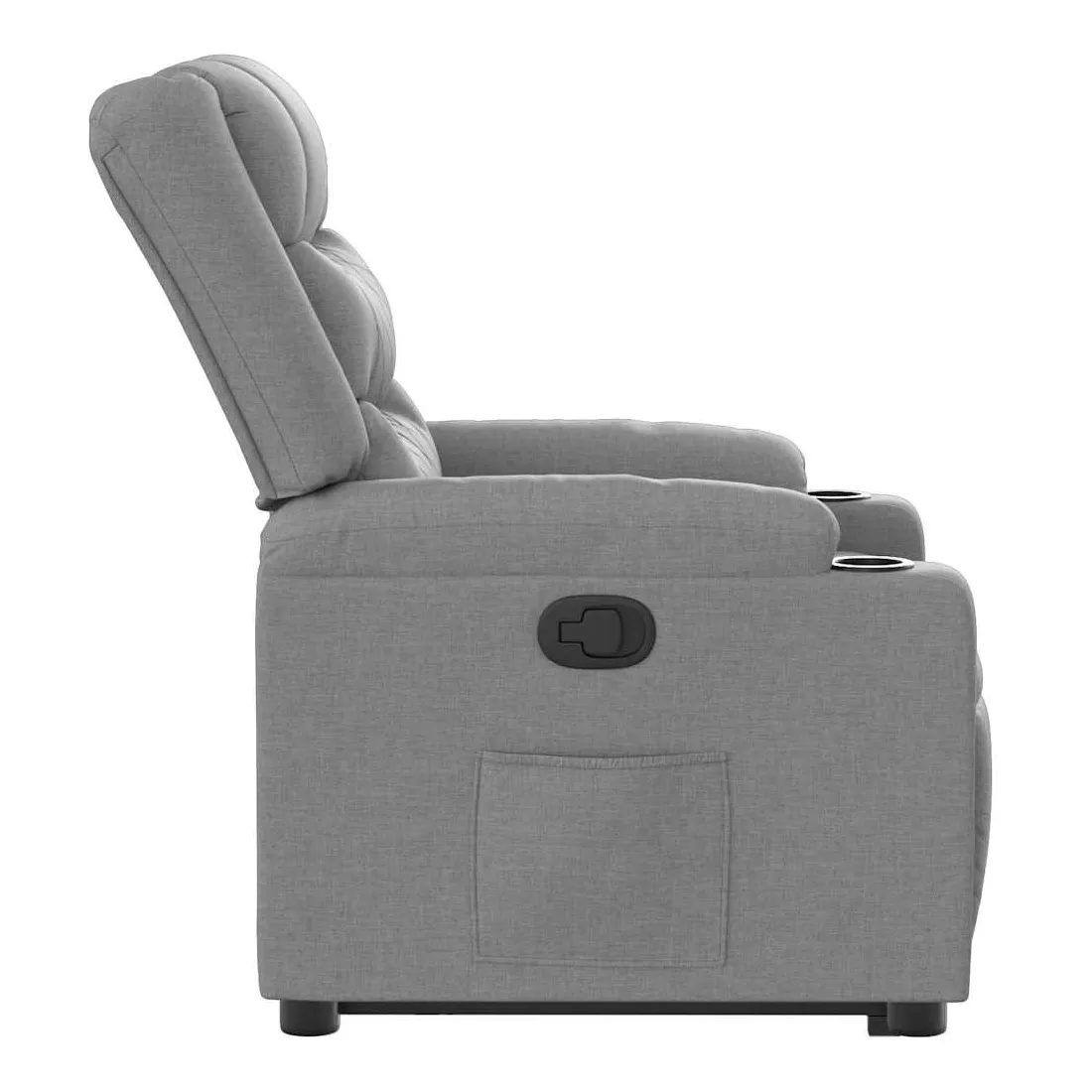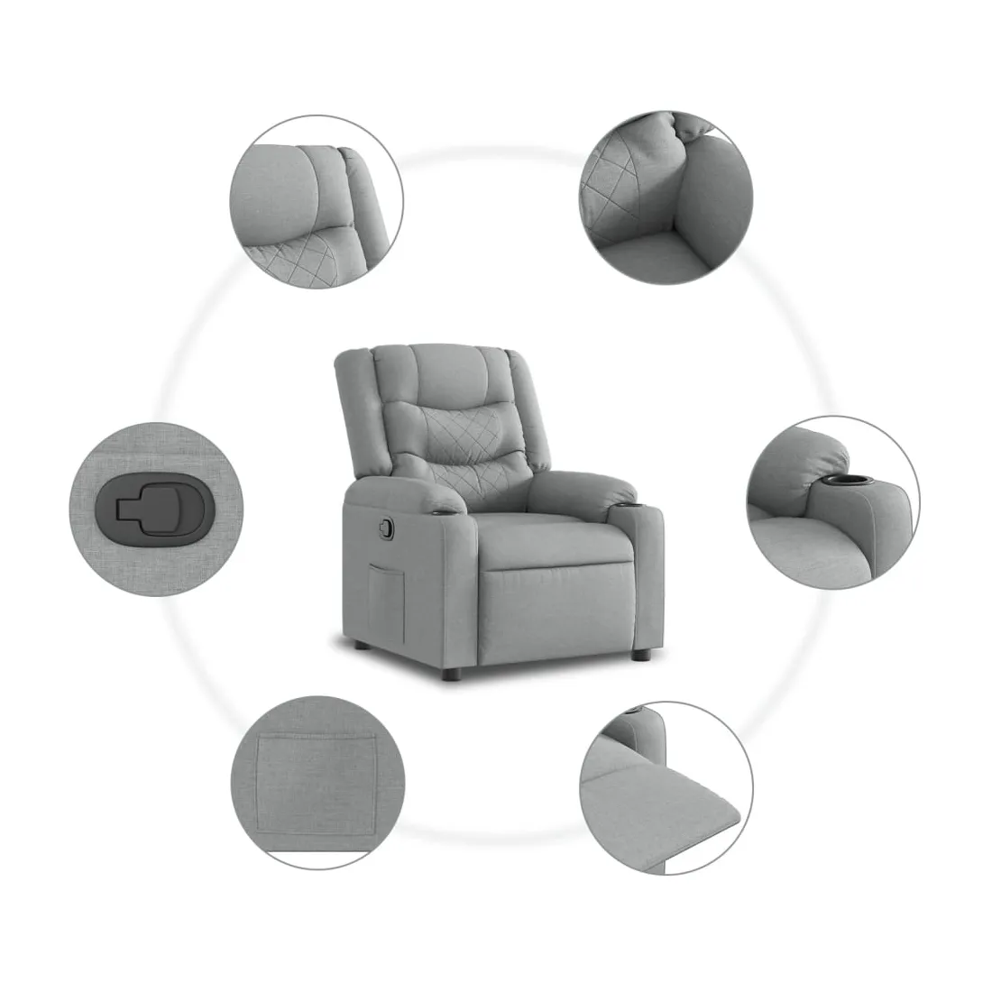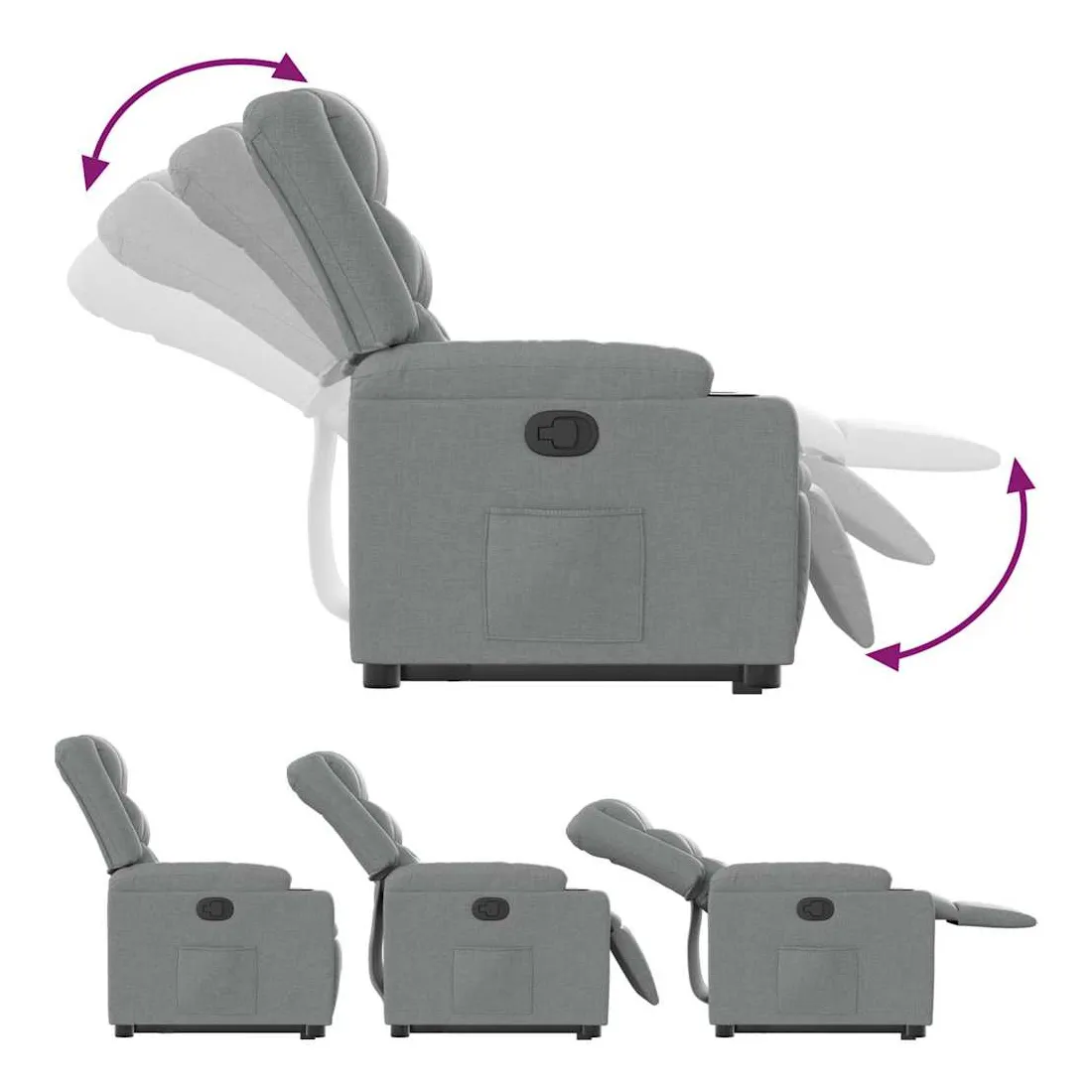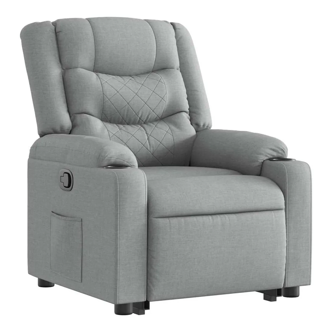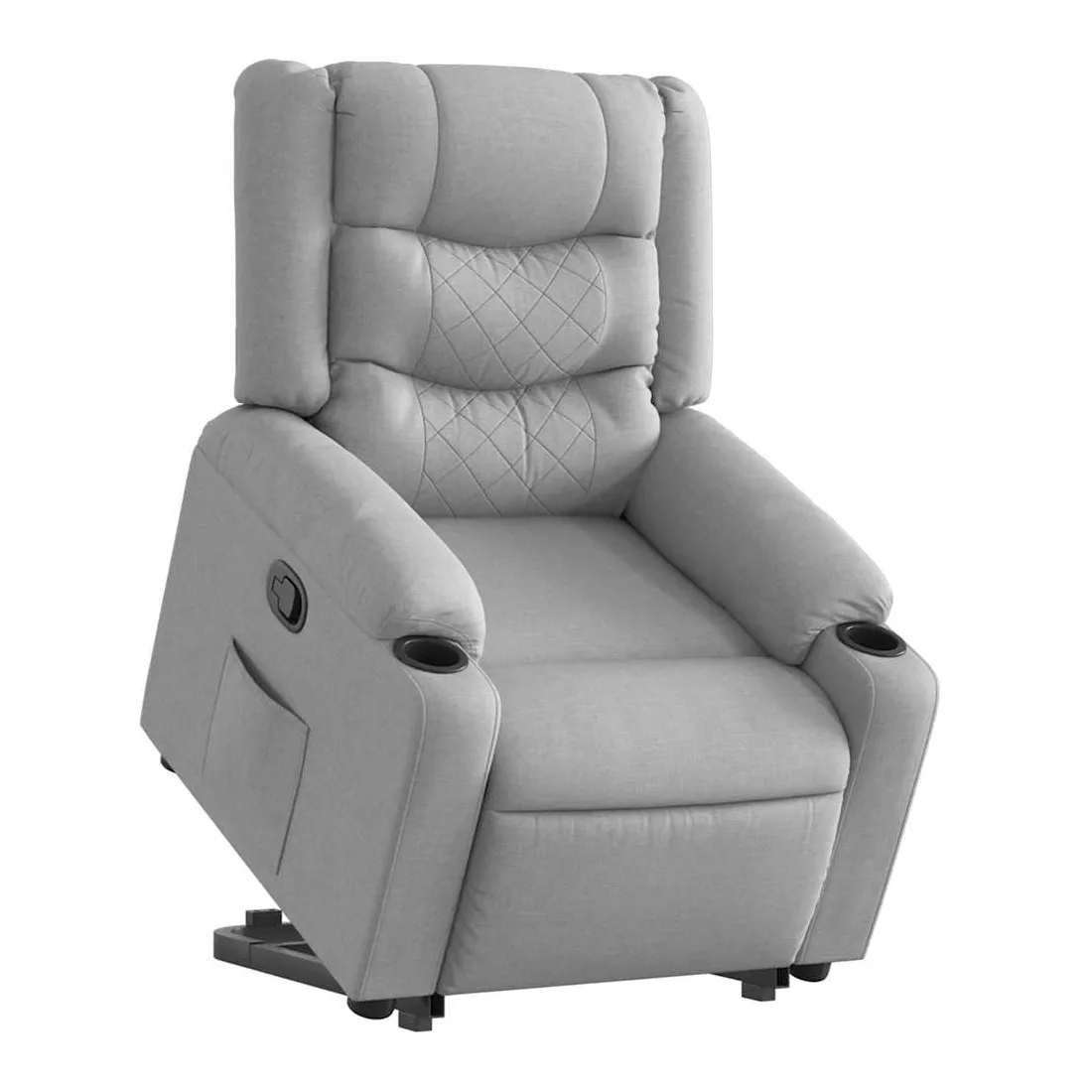 Asseyez-vous et détendez-vous dans ce fauteuil inclinable très confortable ! Fonction de levage électrique : ce fauteuil inclinable pour personnes âgées est équipé d'un moteur électrique pour la fonction de levage. Grâce à la fonction qui pousse toute la chaise vers le haut, vous pouvez facilement vous tenir debout sans stresser votre dos et vos genoux en appuyant simplement sur le bouton.Fonction d'inclinaison manuelle : ce fauteuil inclinable est doté d'une poignée du côté droit. Vous pouvez régler manuellement le repose-pieds et le dossier dans n'importe quelle position selon votre confort en tirant simplement sur la poignée. Cette fonction permet une inclinaison maximale de 135 degrés. De plus, le dossier peut revenir rapidement à sa position d'origine en tirant simplement sur la poignée.Expérience d'assise confortable : le siège, le dossier et les larges accoudoirs bien rembourrés recouverts de tissu procurent une sensation confortable et chaleureuse, vous permettant de vous sentir enveloppé lorsque vous êtes assis. Le tissu présente un aspect simple et épuré et est respirant et durable.Poche latérale pratique : ce fauteuil est doté d'une poche latérale pour vous permettre de garder vos objets essentiels à portée de main.Cadre solide et stable : le cadre en bois et en métal offre une structure solide et une grande stabilité. Ce fauteuil inclinable est confortable et durable.