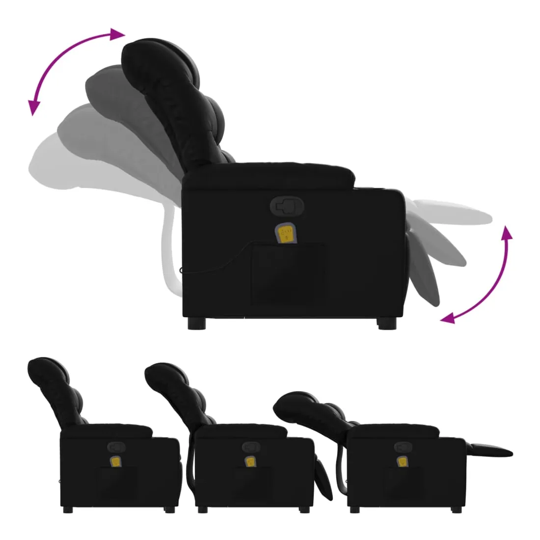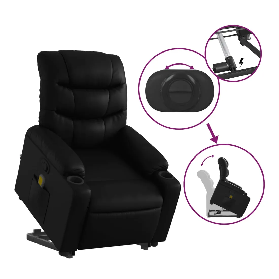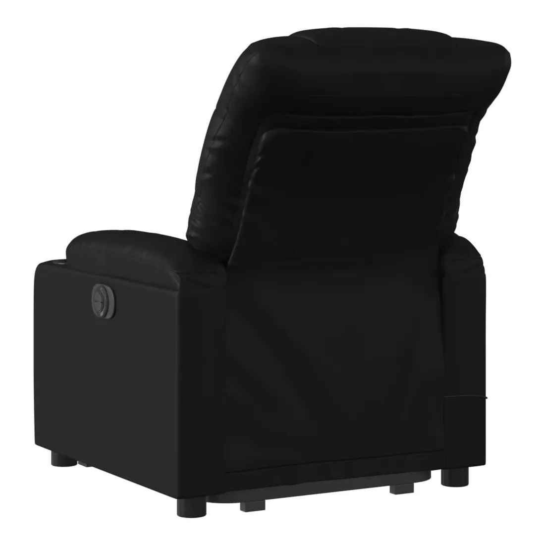 Asseyez-vous et détendez-vous dans ce fauteuil inclinable de massage très confortable ! Fonction de levage électrique : ce fauteuil inclinable pour personnes âgées est équipé d'un moteur électrique pour la fonction de levage. Grâce à la fonction qui pousse toute la chaise vers le haut, vous pouvez facilement vous tenir debout sans stresser votre dos et vos genoux en appuyant simplement sur le bouton.Fonction d'inclinaison manuelle : ce fauteuil inclinable est doté d'une poignée du côté droit. Vous pouvez régler manuellement le repose-pieds et le dossier dans n'importe quelle position selon votre confort en tirant simplement sur la poignée. Cette fonction permet une inclinaison maximale de 135 degrés. De plus, le dossier peut revenir rapidement à sa position d'origine en tirant simplement sur la poignée.Fonction de vibration : les 6 points de massage vous permettent de faire l'expérience d'un massage mieux ciblé. De plus, la télécommande incluse vous permet de choisir différents programmes de massage. La fonction de massage est alimentée par le connecteur USB qui nécessite une source d'alimentation USB certifiée de 5 V (non fournie).Expérience de siège confortable : le siège, le dossier et les larges accoudoirs rembourrés épais recouverts de similicuir procurent une sensation confortable et chaleureuse, vous faisant vous sentir enlacé lorsque vous êtes assis. Le simili cuir est un matériau très résistant. Il est résistant aux taches, ce qui le rend facile à nettoyer avec un chiffon humide. La surface lisse donne également un aspect luxueux et la beauté du cuir véritable.Poche latérale pratique : ce fauteuil est doté d'une poche latérale pour ranger votre télécommande ou garder vos objets essentiels à portée de main.Cadre solide et stable : le cadre en bois et en métal offre une structure solide et une grande stabilité. Ce fauteuil inclinable est confortable et durable.