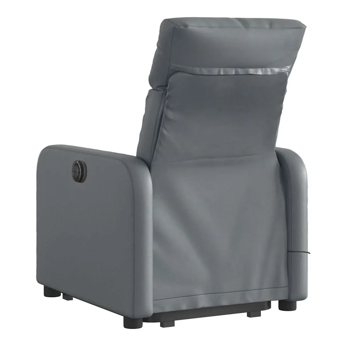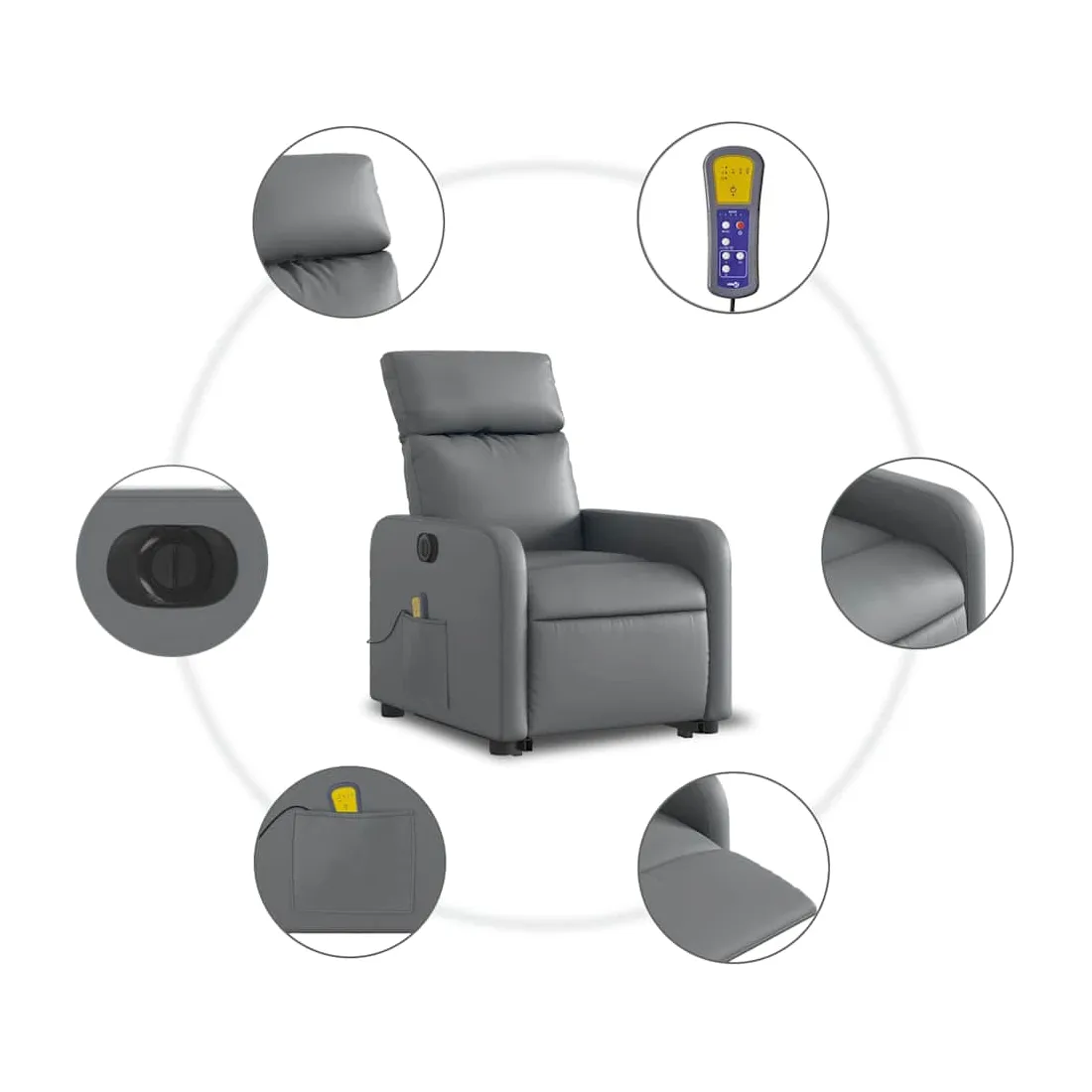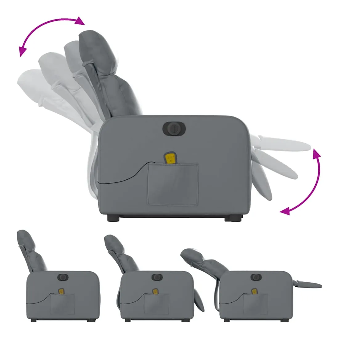 Asseyez-vous et détendez-vous dans ce fauteuil inclinable de massage électrique très confortable ! Fonction de levage électrique : ce fauteuil inclinable pour personnes âgées est équipé d'un moteur électrique pour la fonction de levage. Grâce à la fonction qui pousse toute la chaise vers le haut, vous pouvez facilement vous tenir debout sans stresser votre dos et vos genoux en appuyant simplement sur le bouton.Fonction d'inclinaison électrique : ce fauteuil inclinable est également équipé d'un moteur électrique qui permet de régler automatiquement le repose-pied et le dossier dans n'importe quelle position, selon votre confort, en appuyant simplement sur le bouton situé sur le côté du fauteuil. Cette fonction permet une inclinaison maximale de 135 degrés. En outre, le dossier peut revenir automatiquement à sa position d'origine par une simple pression sur le bouton.Fonction de vibration : les 6 points de massage vous permettent de faire l'expérience d'un massage mieux ciblé. De plus, la télécommande incluse vous permet de choisir différents programmes de massage. La fonction de massage est alimentée par le connecteur USB qui nécessite une source d'alimentation USB certifiée de 5 V (non fournie).Expérience de siège confortable : le siège, le dossier et les larges accoudoirs rembourrés épais recouverts de similicuir procurent une sensation confortable, vous faisant vous sentir enlacé lorsque vous êtes assis. Le similicuir est un matériau très résistant. Il est résistant aux taches, ce qui le rend facile à nettoyer avec un chiffon humide. La surface lisse donne également un aspect luxueux et la beauté du cuir véritable.Poche latérale pratique : ce fauteuil est doté d'une poche latérale pour vous permettre de garder vos objets essentiels à portée de main.Cadre solide et stable : le cadre en bois et en métal offre une structure solide et une grande stabilité. Ce fauteuil inclinable est confortable et durable.