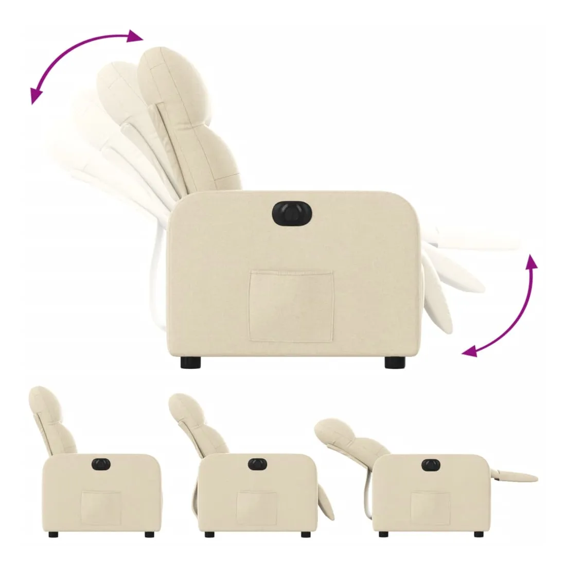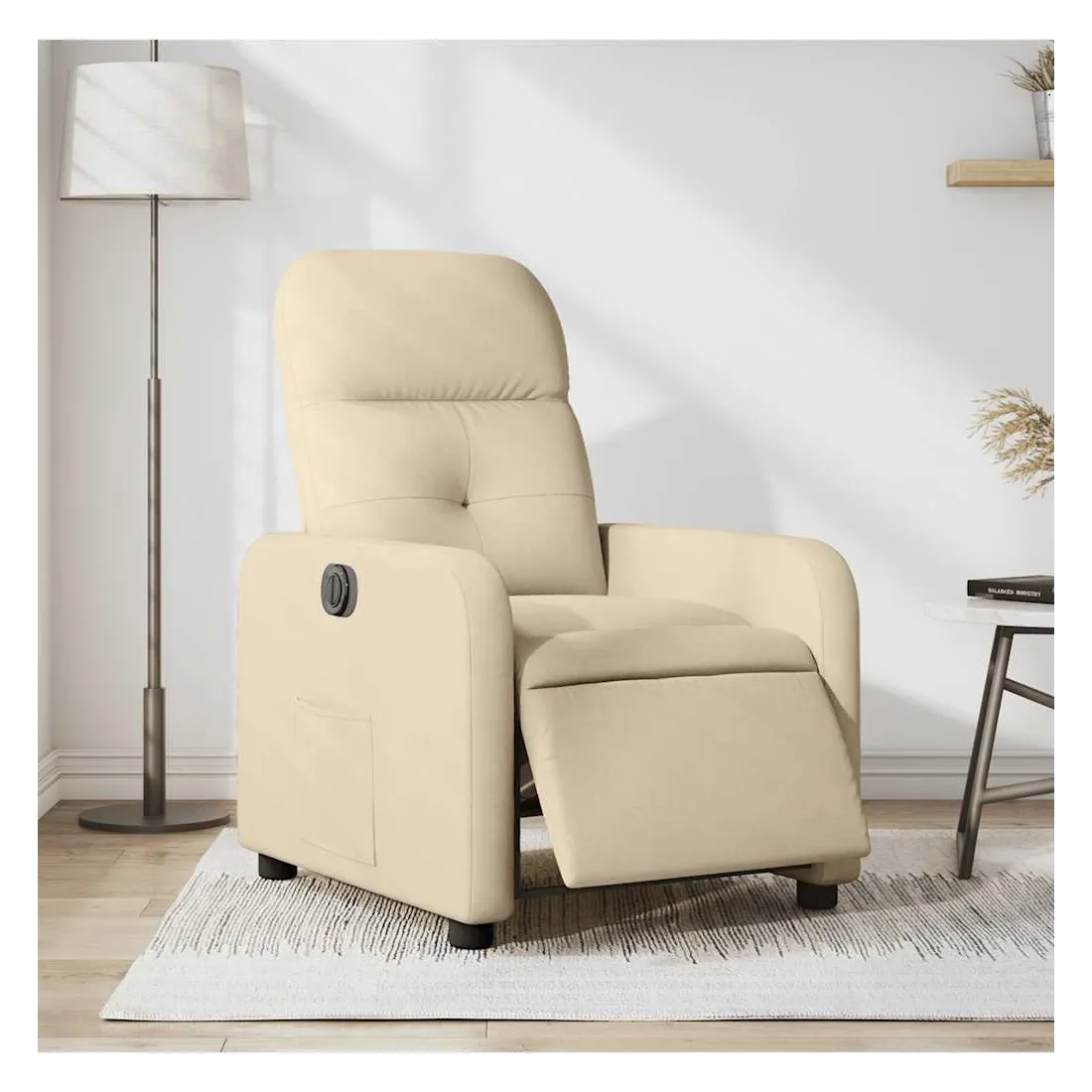 Asseyez-vous et détendez-vous dans ce fauteuil inclinable électrique très confortable ! Fonction d'inclinaison électrique : ce fauteuil inclinable est équipé d'un moteur électrique qui permet de régler automatiquement le repose-pied et le dossier dans n'importe quelle position, selon votre confort, en appuyant simplement sur le bouton situé sur le côté du fauteuil. Cette fonction permet une inclinaison maximale de 135 degrés. En outre, le dossier peut revenir automatiquement à sa position d'origine par une simple pression sur le bouton.Expérience d'assise confortable : le siège, le dossier et les larges accoudoirs bien rembourrés recouverts de tissu procurent une sensation confortable et chaleureuse, vous permettant de vous sentir enveloppé lorsque vous êtes assis. Le tissu présente un aspect simple et épuré et est respirant et durable.Poche latérale pratique : ce fauteuil est doté d'une poche latérale pour vous permettre de garder vos objets essentiels à portée de main.Cadre solide et stable : le cadre en bois et en métal offre une structure solide et une grande stabilité. Ce fauteuil inclinable est confortable et durable.