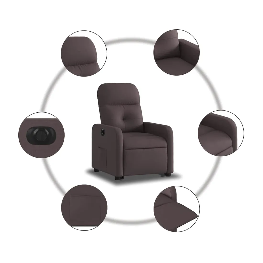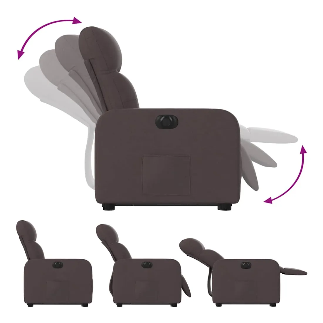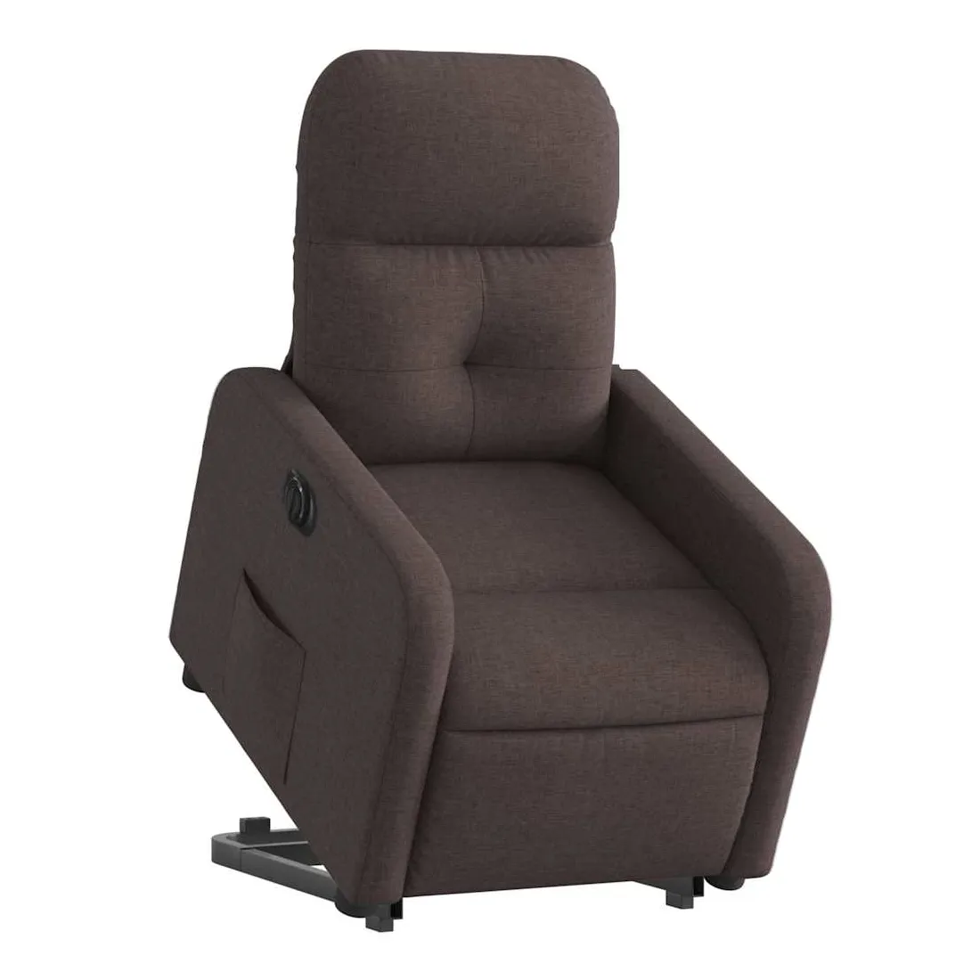 Asseyez-vous et détendez-vous dans ce fauteuil inclinable électrique très confortable ! Fonction de levage électrique : ce fauteuil inclinable pour personnes âgées est équipé d'un moteur électrique pour la fonction de levage. Grâce à la fonction qui pousse toute la chaise vers le haut, vous pouvez facilement vous tenir debout sans stresser votre dos et vos genoux en appuyant simplement sur le bouton.Fonction d'inclinaison électrique : ce fauteuil inclinable est également équipé d'un moteur électrique qui permet de régler automatiquement le repose-pied et le dossier dans n'importe quelle position, selon votre confort, en appuyant simplement sur le bouton situé sur le côté du fauteuil. Cette fonction permet une inclinaison maximale de 135 degrés. En outre, le dossier peut revenir automatiquement à sa position d'origine par une simple pression sur le bouton.Expérience d'assise confortable : le siège, le dossier et les larges accoudoirs bien rembourrés recouverts de tissu procurent une sensation confortable et chaleureuse, vous permettant de vous sentir enveloppé lorsque vous êtes assis. Le tissu présente un aspect simple et épuré et est respirant et durable.Poche latérale pratique : ce fauteuil est doté d'une poche latérale pour vous permettre de garder vos objets essentiels à portée de main.Cadre solide et stable : le cadre en bois et en métal offre une structure solide et une grande stabilité. Ce fauteuil inclinable est confortable et durable.
