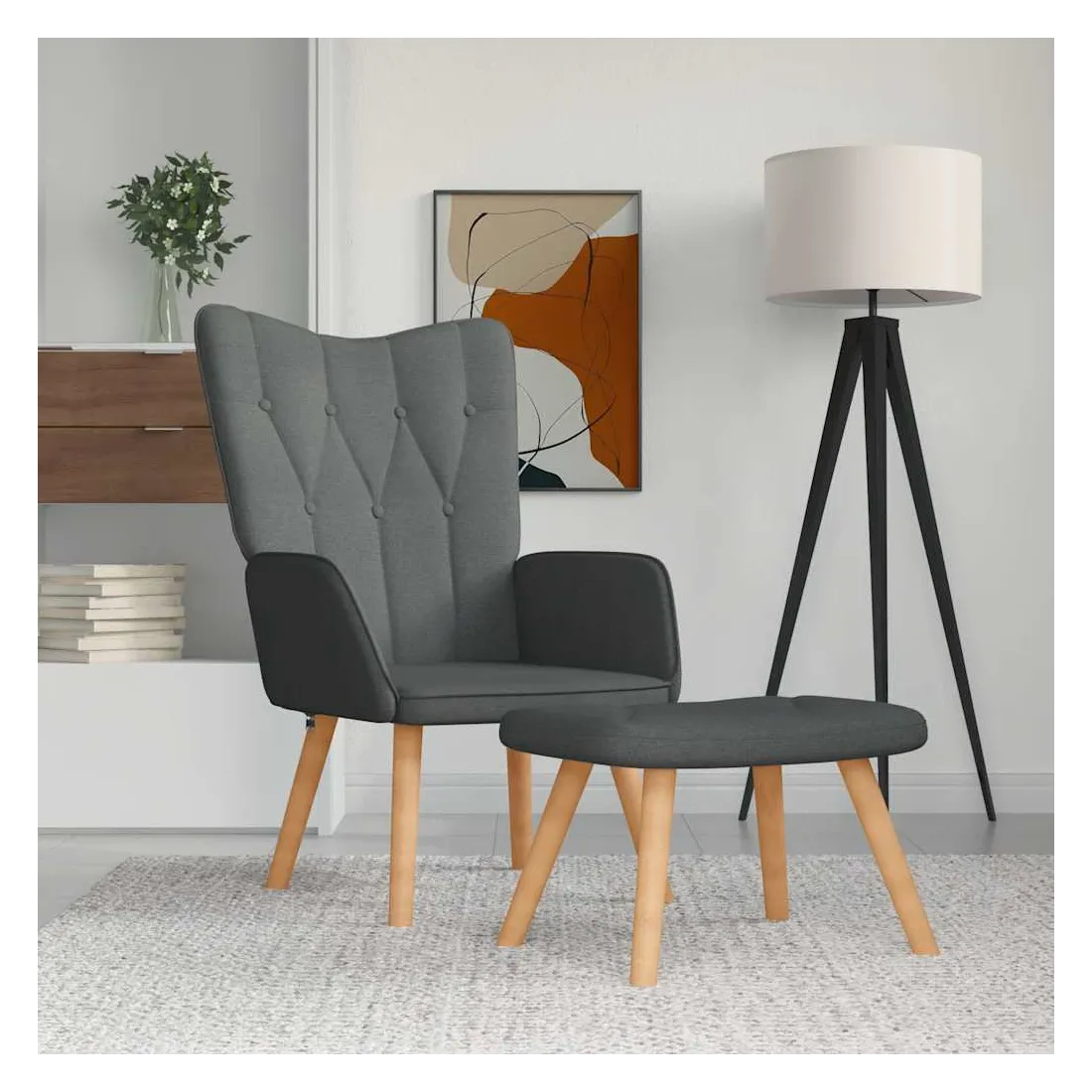 Cette chaise de relaxation avec tabouret au design chic et élégant apportera une touche de modernité à votre déco. Doté de 7 boutons et lignes, ce fauteuil est esthétique. Grâce à sa mousse rembourrée recouverte d'un tissu doux au toucher, vous pourrez profiter d'un confort optimal pendant votre temps d'assise. De plus, soutenue par un cadre en acier et des pieds en bois, la chaise à manger avec tabouret est stable et durable.