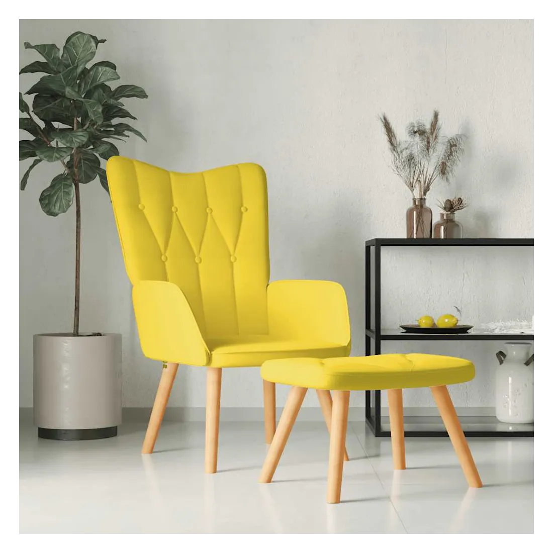Cette chaise de relaxation avec tabouret au design chic et élégant apportera une touche de modernité à votre déco. Doté de 7 boutons et lignes, ce fauteuil est esthétique. Grâce à sa mousse rembourrée recouverte d'un tissu doux au toucher, vous pourrez profiter d'un confort optimal pendant votre temps d'assise. De plus, soutenue par un cadre en acier et des pieds en bois, la chaise à manger avec tabouret est stable et durable.