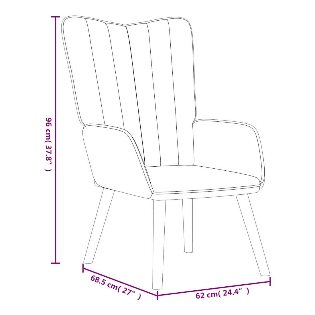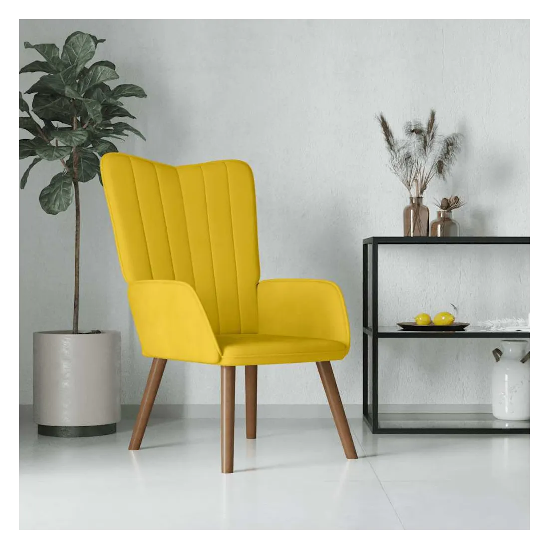 Cette chaise de relaxation est un excellent supplément à votre décor existant. Ce fauteuil, avec quelques lignes sur son dossier, est esthétique. Grâce à sa mousse capitonnée recouverte de velours doux au toucher, vous pourrez profiter d'un confort optimal pendant votre temps d'assise. Soutenu par un cadre en acier et des pieds en bois, le fauteuil de relaxation est stable et durable.