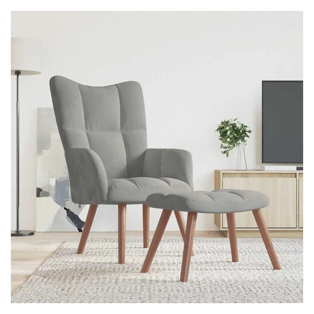 Cette chaise de relaxation avec repose-pied est un excellent supplément à votre décor existant. Ce fauteuil, avec quelques blocs sur son dossier, est esthétique. Grâce à sa mousse épaisse capitonnée recouverte de velours doux au toucher, vous pourrez profiter d'un confort optimal pendant votre temps d'assise. Soutenu par un cadre en acier et des pieds en bois, le fauteuil de relaxation avec repose-pied est stable et durable.
