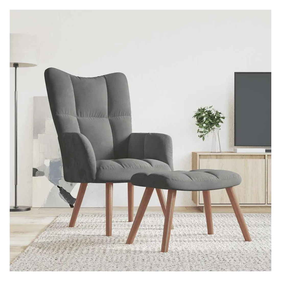 Cette chaise de relaxation avec repose-pied est un excellent supplément à votre décor existant. Ce fauteuil, avec quelques blocs sur son dossier, est esthétique. Grâce à sa mousse épaisse capitonnée recouverte de velours doux au toucher, vous pourrez profiter d'un confort optimal pendant votre temps d'assise. Soutenu par un cadre en acier et des pieds en bois, le fauteuil de relaxation avec repose-pied est stable et durable.