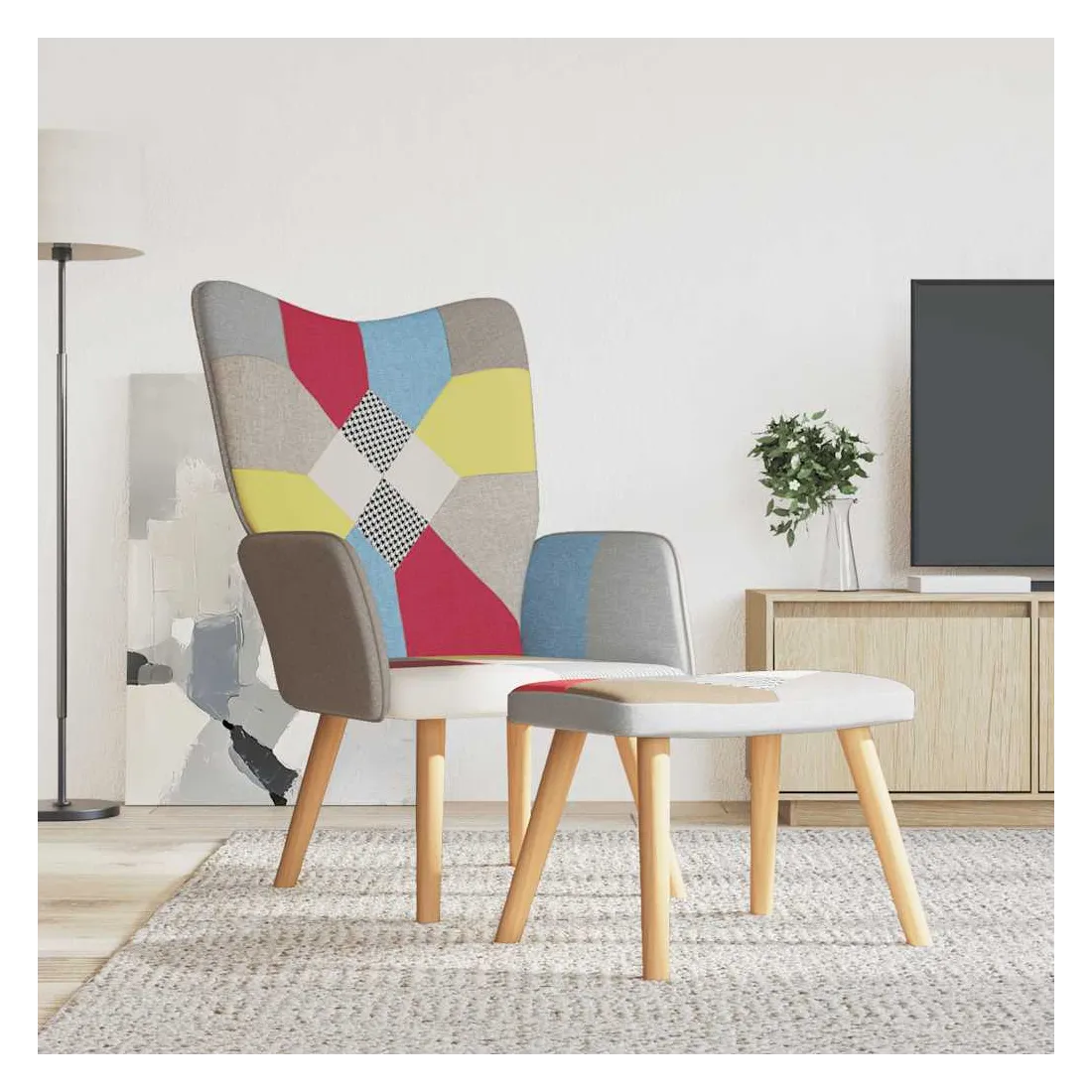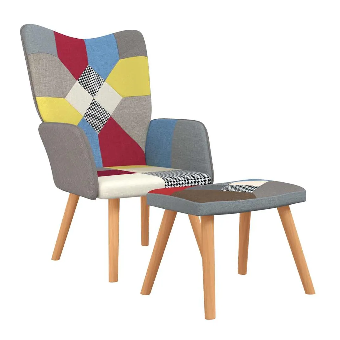 Cette chaise de relaxation avec repose-pied au design chic et élégant apportera une touche de modernité à votre déco. Avec un design de patchwork vif, ce fauteuil est esthétiquement agréable. Grâce à sa mousse rembourrée recouverte d'un tissu doux au toucher, vous pourrez profiter d'un confort optimal pendant votre temps d'assise. De plus, soutenu par un cadre en acier et des pieds en bois, la chaise de relaxation avec repose-pied est stable et durable.