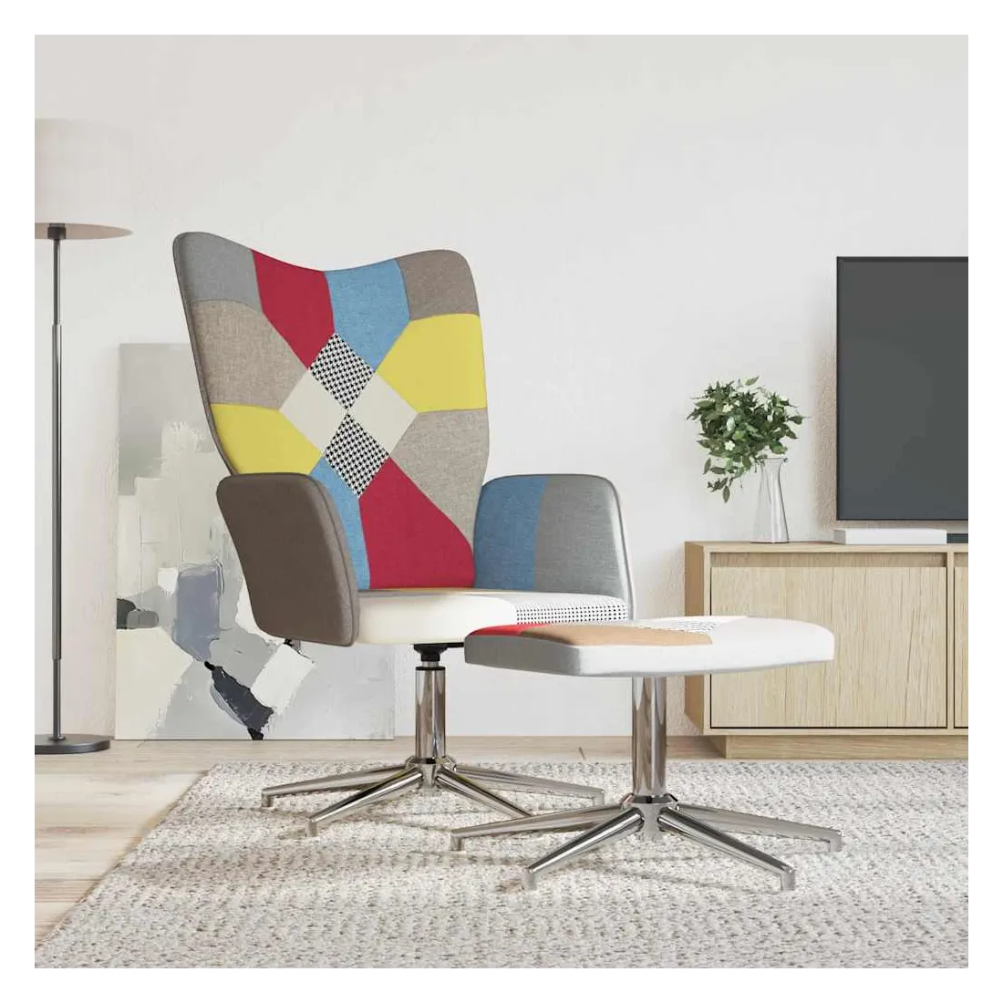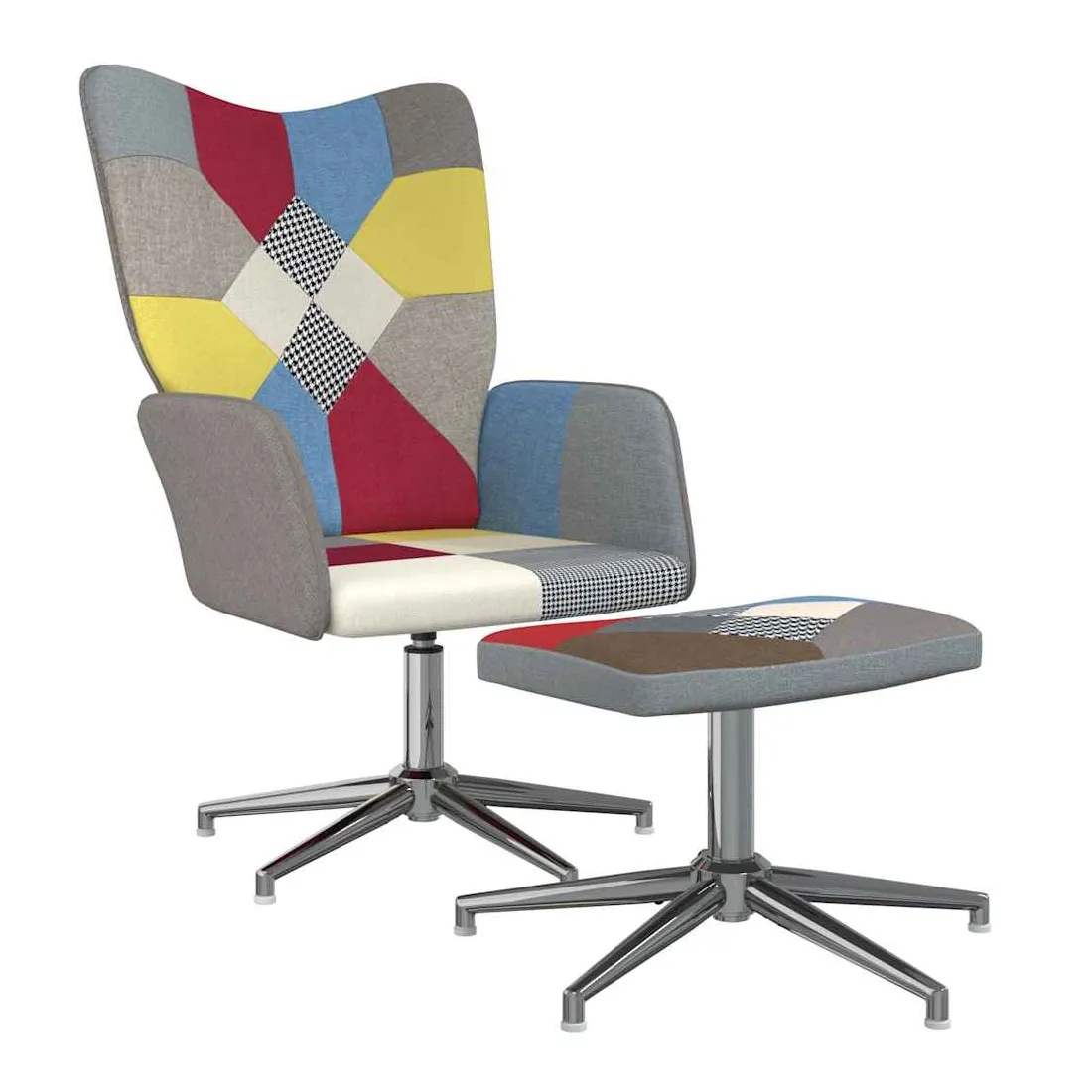 Cette chaise de relaxation avec repose-pied est un excellent supplément à votre décor existant. Ce fauteuil, au design patchwork brillant, est esthétiquement plaisant. Grâce à sa mousse rembourrée recouverte de tissu doux au toucher, vous pourrez profiter d'un confort optimal pendant votre temps d'assise. Ce siège de relaxation peut pivoter à 360 degrés pour une grande flexibilité. Soutenue par un cadre en acier, la chaise de relaxation avec un repose-pied est stable et durable.