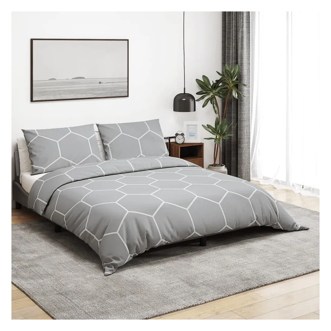 Ensemble de housse de couette Gris 220x240 cm Coton