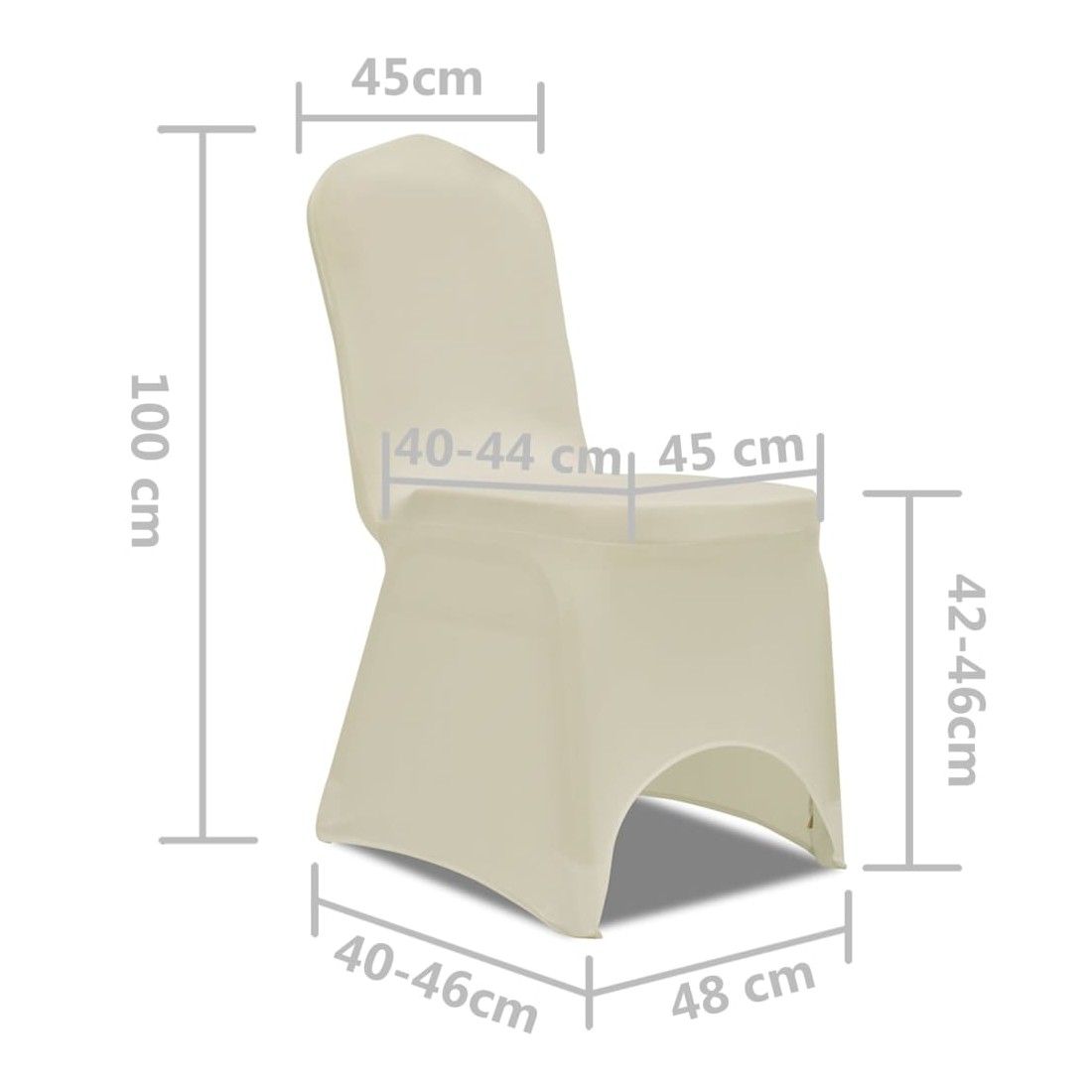 Cette housse de chaise embellira sans aucun doute vos événements comme les mariages, banquets, conférences, foires commerciales, etc. Elle s'adapte à presque tous les types de chaise avec une hauteur totale maximale de 100 cm. Conçue à partir de tissu extensible, notre housse de chaise peut simplement être dépliée et étirée sur les pieds de la chaise. Sa composition contenant 10% d'élasthanne, lui permet de s'ajuster au mieux et assure une bonne adhérence. Offrez-vous cette housse de chaise et transformer votre chaise en une véritable œuvre d'art. La livraison comprend 50 housses de chaise.