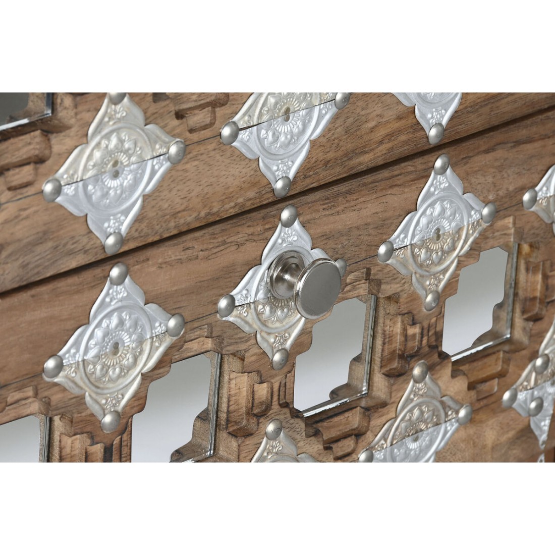 Als je een vleugje originaliteit wilt toevoegen aan je huis, dan kan dat met Ladenkast Home ESPRIT Bruin Zwart Zilverkleurig Mangohout Spiegel Indiaas 45 x 35 x 105 cm.