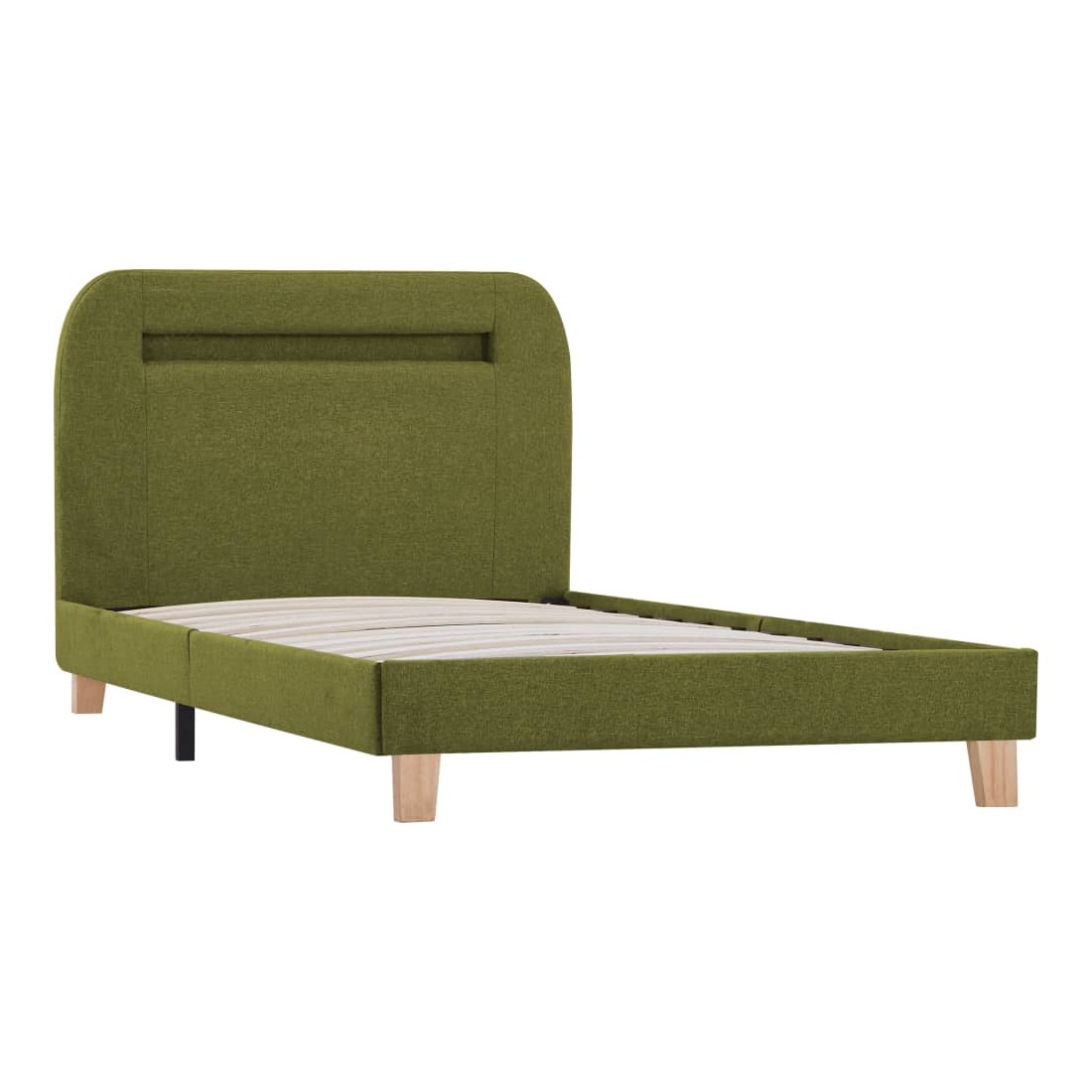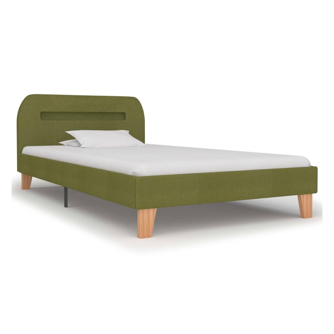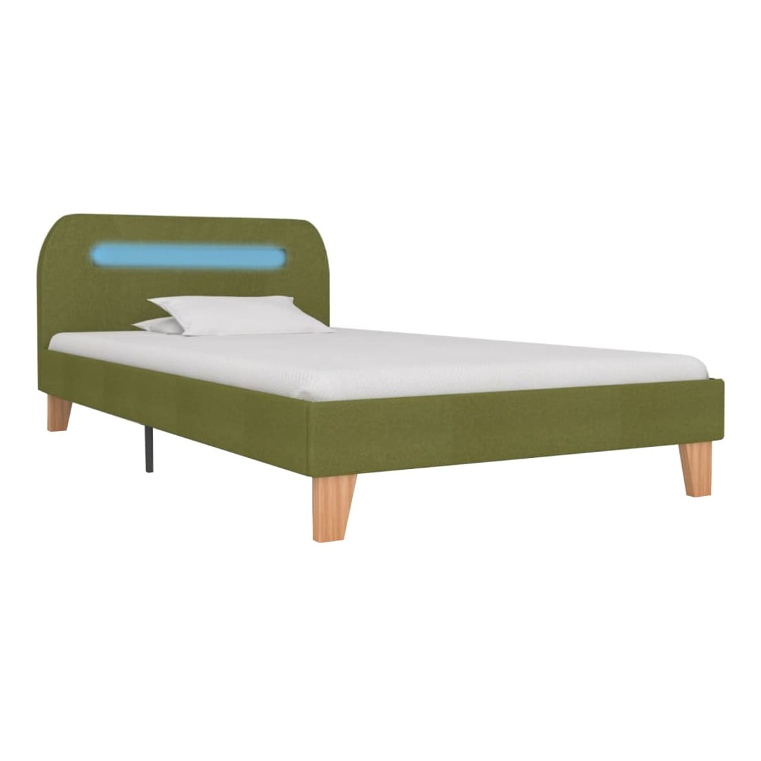 Cadre de lit avec LED sans matelas vert tissu 90x200 cm
