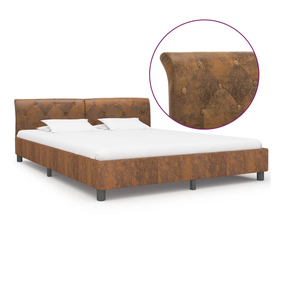 Cadre de lit sans matelas marron similicuir daim 180x200 cm