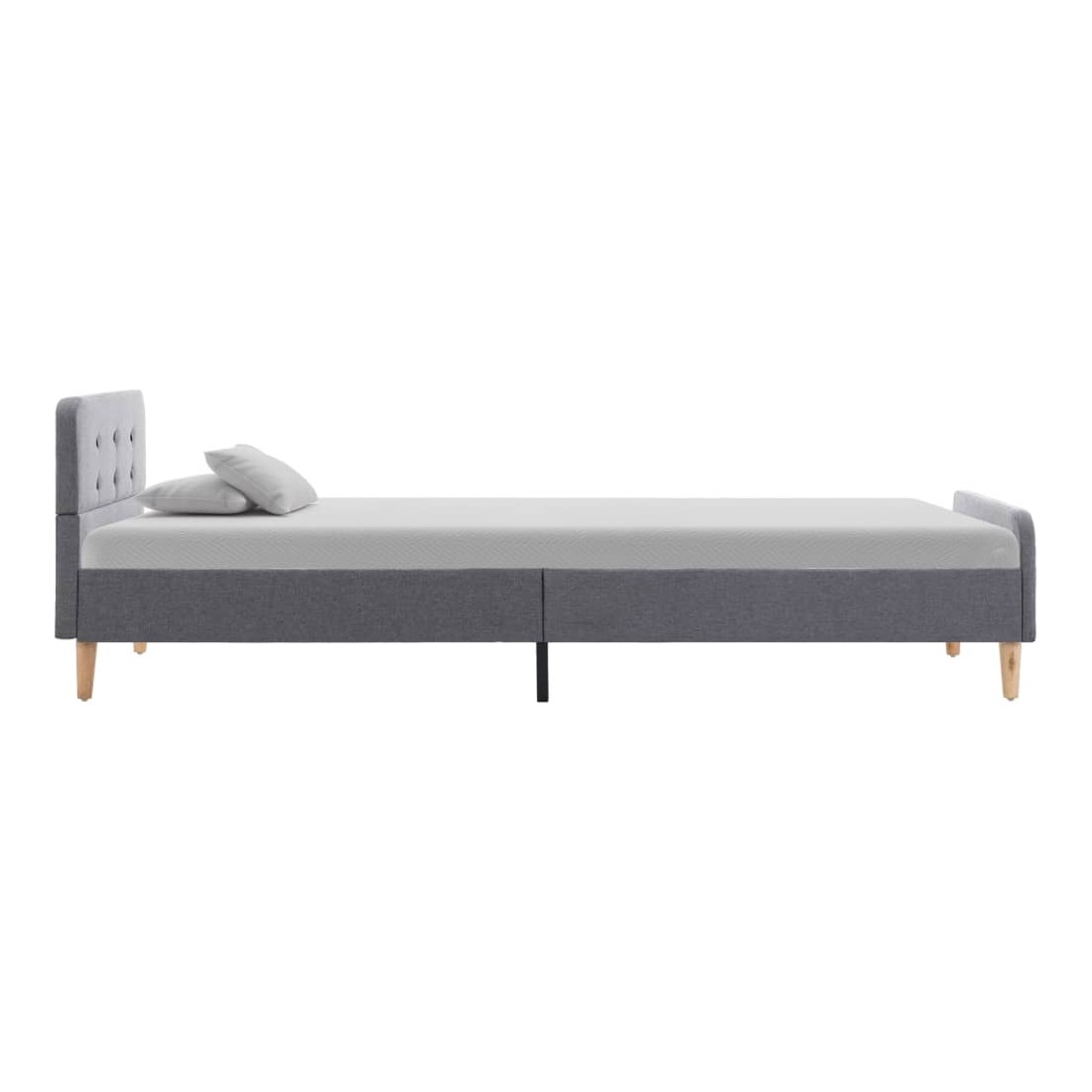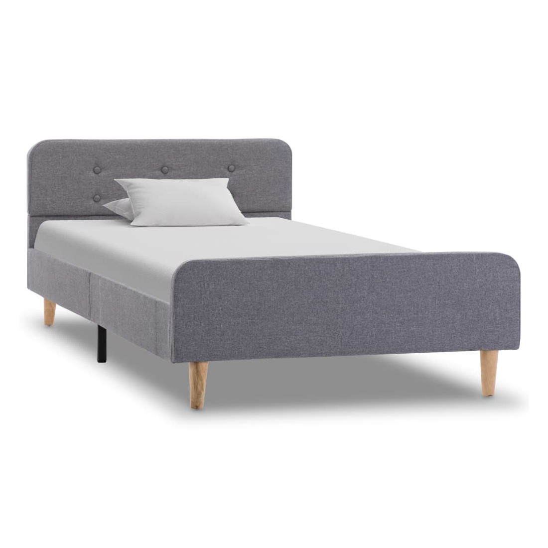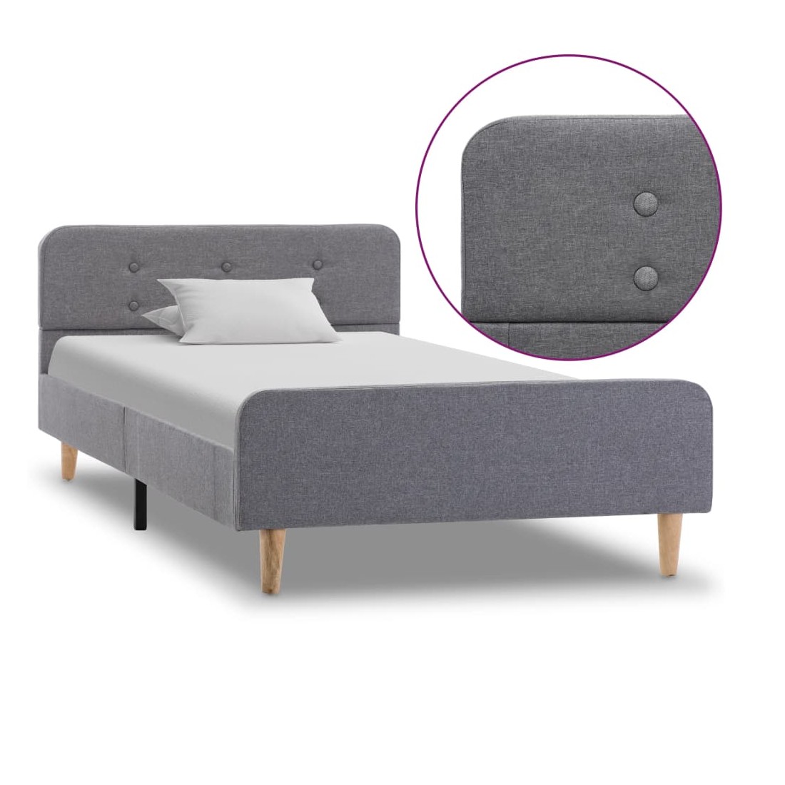 Ce cadre de lit classique deviendra l'attraction principale de votre chambre à coucher. Se distinguant par un design sobre mais élégant, ce cadre de lit ajoute une touche de charme élégant à la décoration de votre chambre à coucher. Fabriqué en bois et en MDF, ce cadre de lit est extrêmement robuste et durable. Les pieds en acier enduit de poudre ajoutent de la durabilité au lit. De plus, recouvert de tissu durable, le lit dégage un look accueillant et se nettoie facilement. Ce cadre de lit convient à un matelas de 100 x 200 cm. Veuillez noter que la livraison inclut un cadre de lit seulement ; un matelas n'est pas inclus. Le lit est facile à assembler. Vous pouvez chercher le matelas correspondant dans notre boutique.