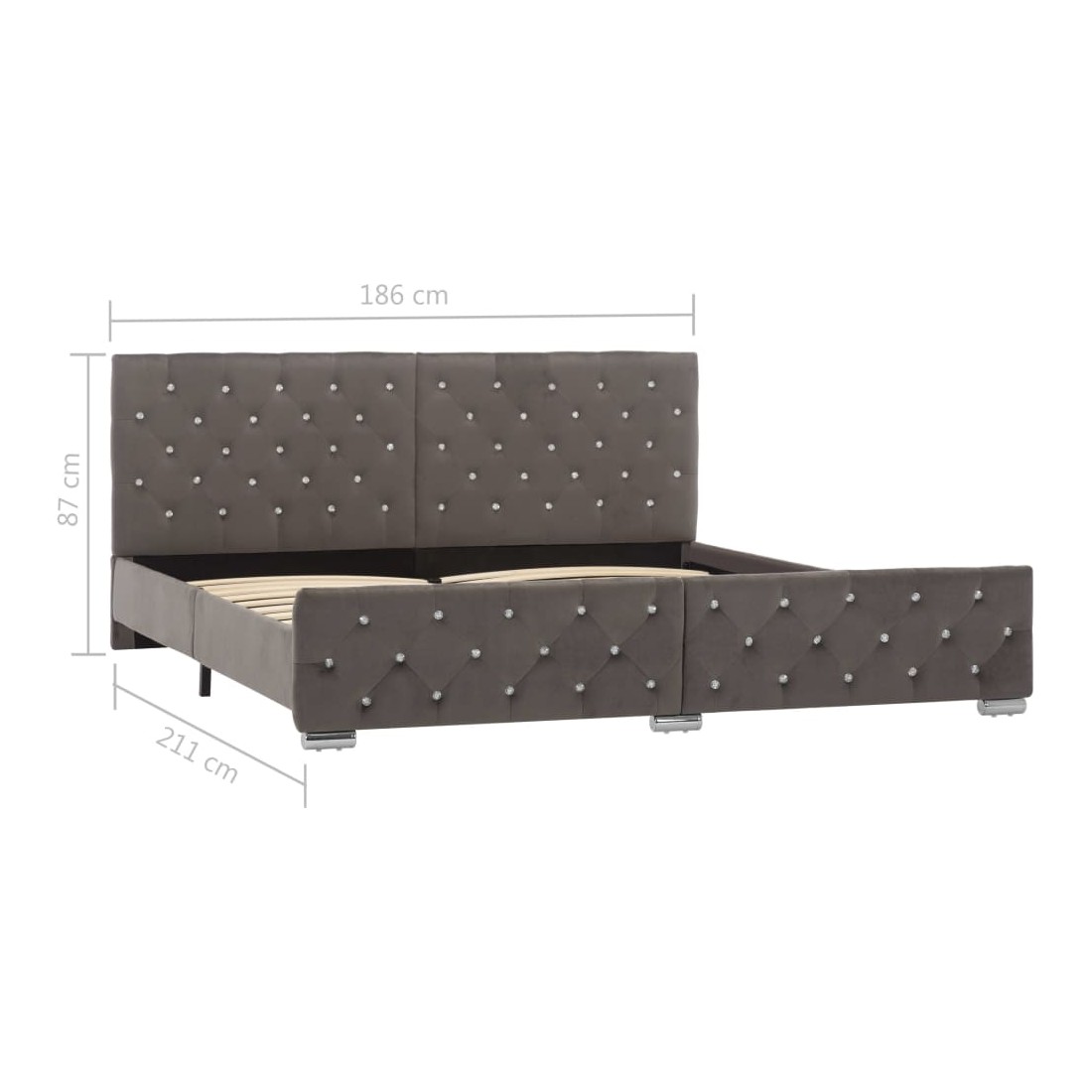 Cadre de lit sans matelas gris velours 180x200 cm