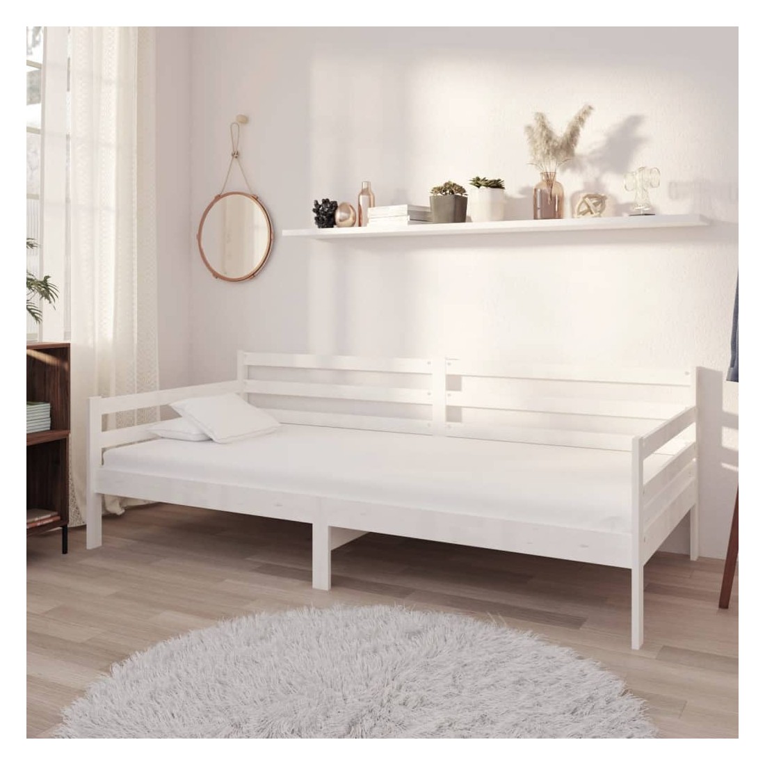 Ce lit en bois est une solution parfaite pour accueillir des invités pour la nuit tout en offrant un espace confortable pour s'asseoir pendant la journée. Le canapé-lit est fait de bois de pin massif, ce qui le rend robuste et stable. Les lattes robustes offrent également le soutien et le confort nécessaires. Vous pouvez toujours profiter d'une bonne nuit de sommeil sur le lit avec un matelas ultra-doux ! Il offre une expérience de sommeil calme et protège également votre santé vertébrale. Nous vous recommandons d'aérer régulièrement le matelas pour prolonger sa durée de vie. Le lit en bois multifonctionnel peut être utilisé comme un canapé pendant la journée, ou comme un lit pendant la nuit pour offrir une solution rapide pour accueillir des invités pour la nuit. Ce canapé-lit pratique saura attirer tous les regards, où qu'il sera placé ! Remarque importante : vous ne pouvez pas retourner le matelas pour des raisons d'hygiène si la housse de matelas a été ouverte ou retirée.