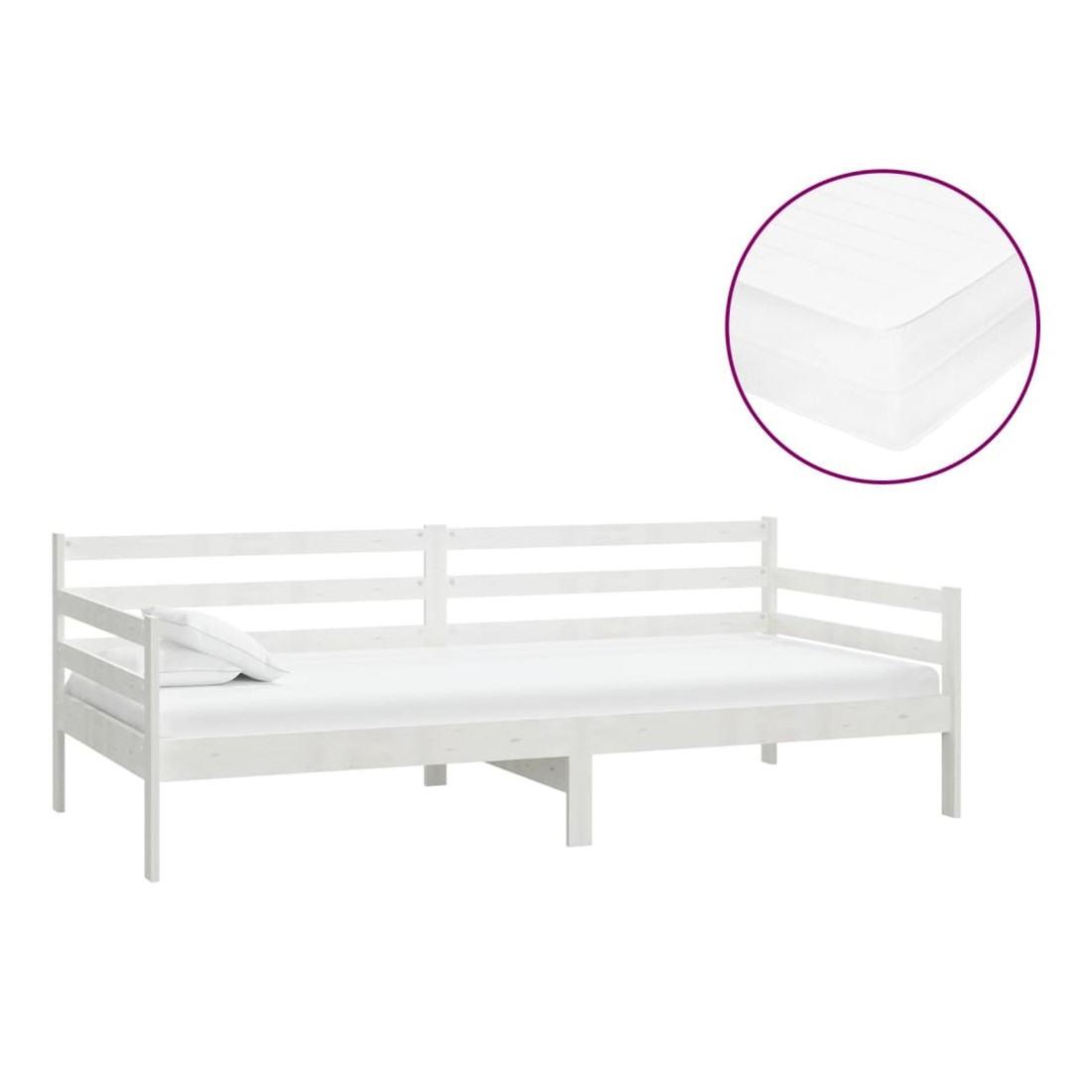 Lit de repos avec matelas 90x200 cm Blanc Bois de pin massif