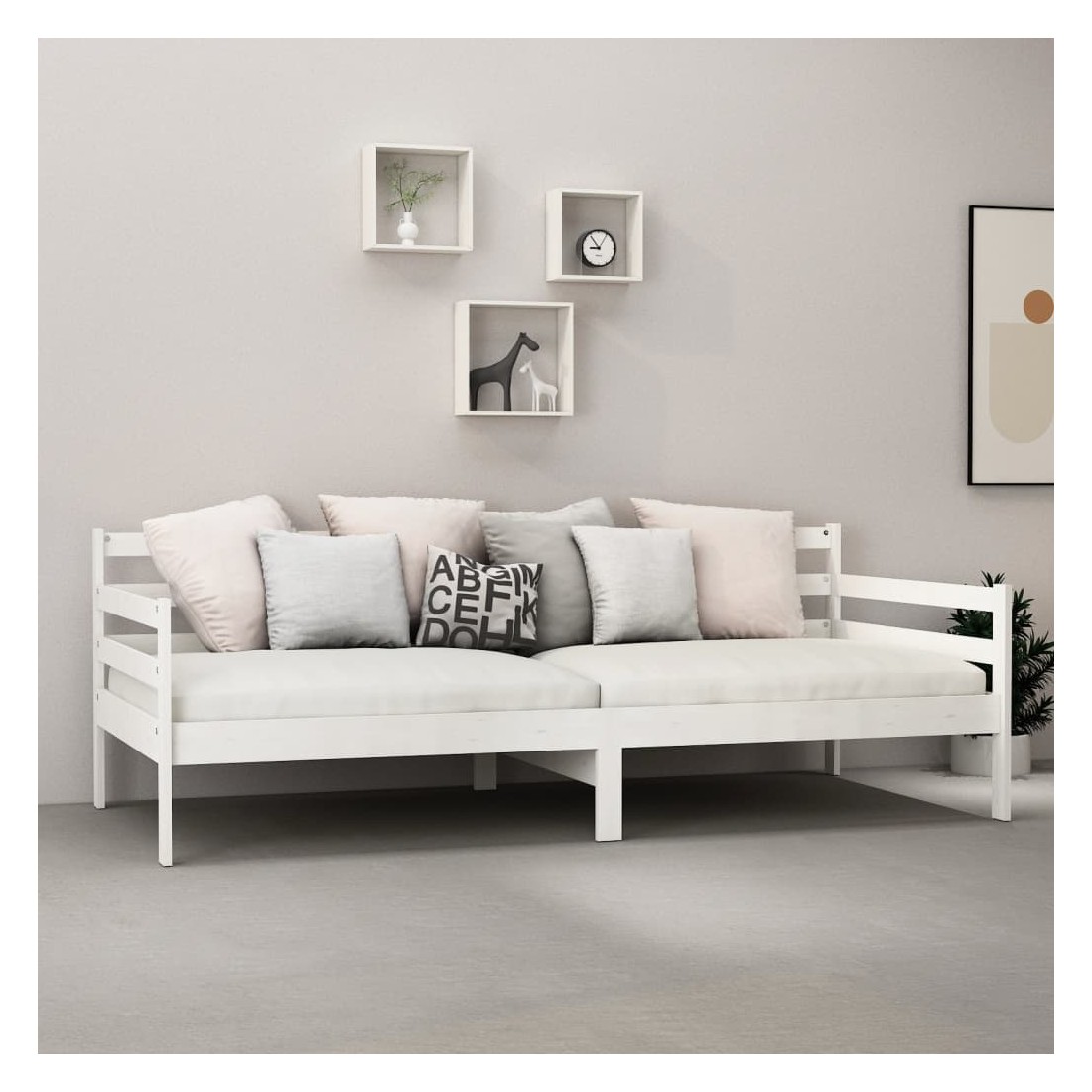Ce lit en bois est une solution parfaite pour accueillir des invités pour la nuit tout en offrant un espace confortable pour s'asseoir pendant la journée. Le canapé-lit est fait de bois de pin massif, ce qui le rend robuste et stable. Les lattes robustes offrent également le soutien et le confort nécessaires. Vous pouvez toujours profiter d'une bonne nuit de sommeil sur le lit avec un matelas ultra-doux ! Il offre une expérience de sommeil calme et protège également votre santé vertébrale. Nous vous recommandons d'aérer régulièrement le matelas pour prolonger sa durée de vie. Le lit en bois multifonctionnel peut être utilisé comme un canapé pendant la journée, ou comme un lit pendant la nuit pour offrir une solution rapide pour accueillir des invités pour la nuit. Ce canapé-lit pratiqu