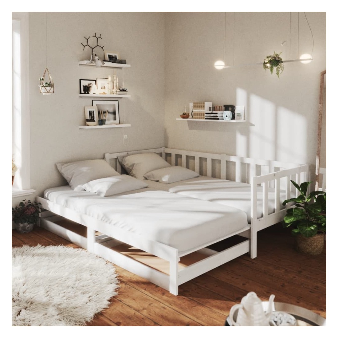 Ce lit en bois est une solution parfaite pour accueillir des invités pour la nuit tout en offrant un espace confortable pour s'asseoir pendant la journée. Le canapé-lit est fait de bois de pin massif, ce qui le rend robuste et stable. Les lattes robustes offrent également le soutien et le confort nécessaires. Vous pouvez toujours profiter d'une bonne nuit de sommeil sur le lit avec un matelas ultra-doux ! Il offre une expérience de sommeil calme et protège également votre santé vertébrale. Nous vous recommandons d'aérer régulièrement le matelas pour prolonger sa durée de vie. Le lit en bois multifonctionnel peut être utilisé comme un canapé pendant la journée, ou comme un lit pendant la nuit pour offrir une solution rapide pour accueillir des invités pour la nuit. Ce canapé-lit pratique saura attirer tous les regards, où qu'il sera placé ! Bon à savoir : les matelas ne sont pas inclus avec ce lit. Nous proposons une sélection variée de matelas. Vous pouvez consulter notre boutique pour trouver les matelas assortis.