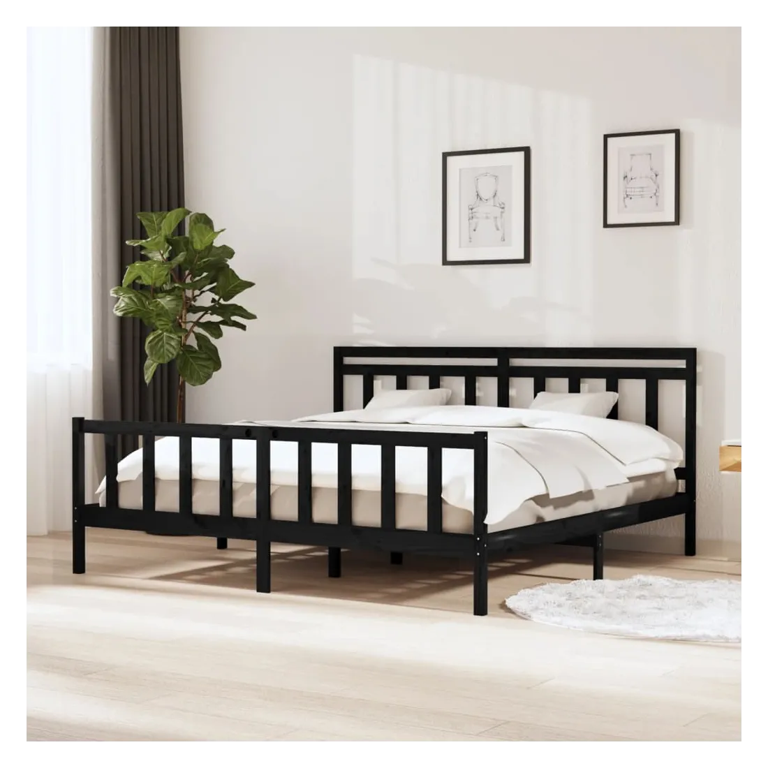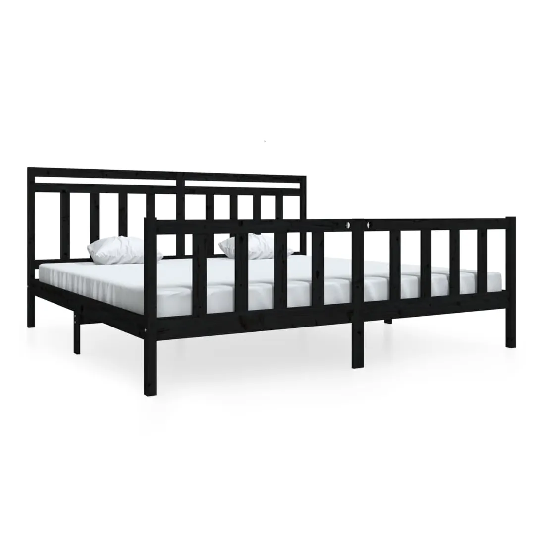 Cadre de lit sans matelas noir bois massif 200x200 cm