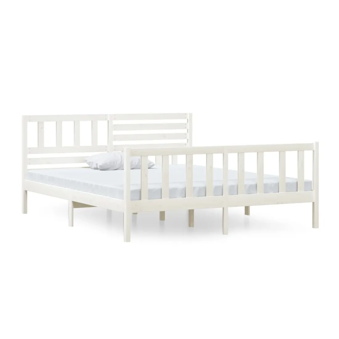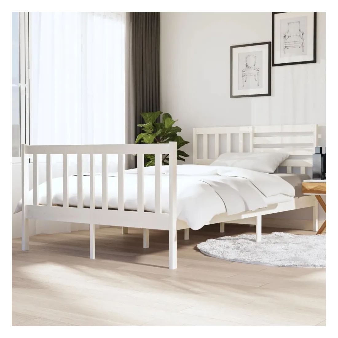 Cadre de lit sans matelas blanc bois massif 140x190 cm