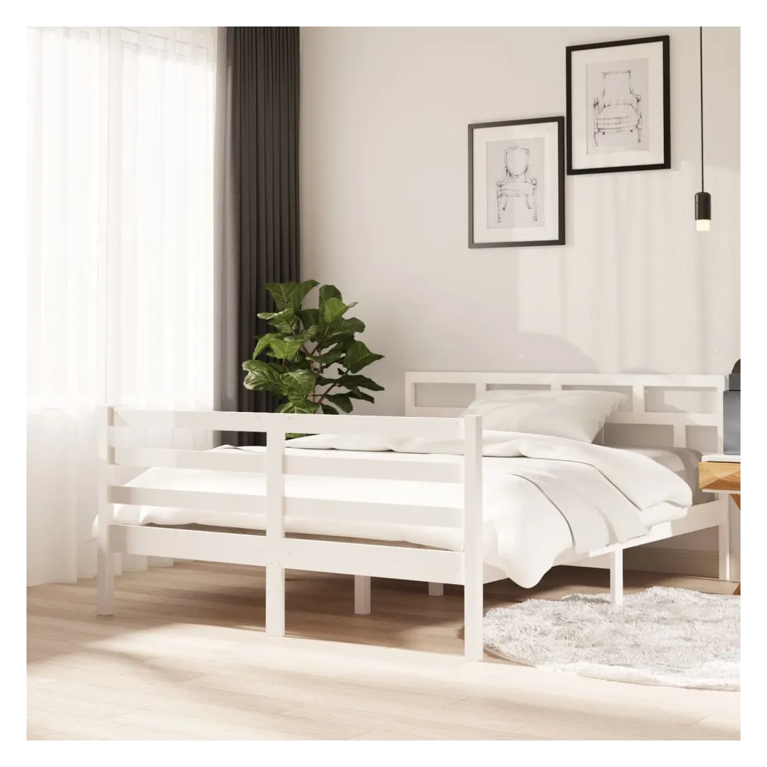 Cadre de lit sans matelas blanc bois massif 140x190 cm