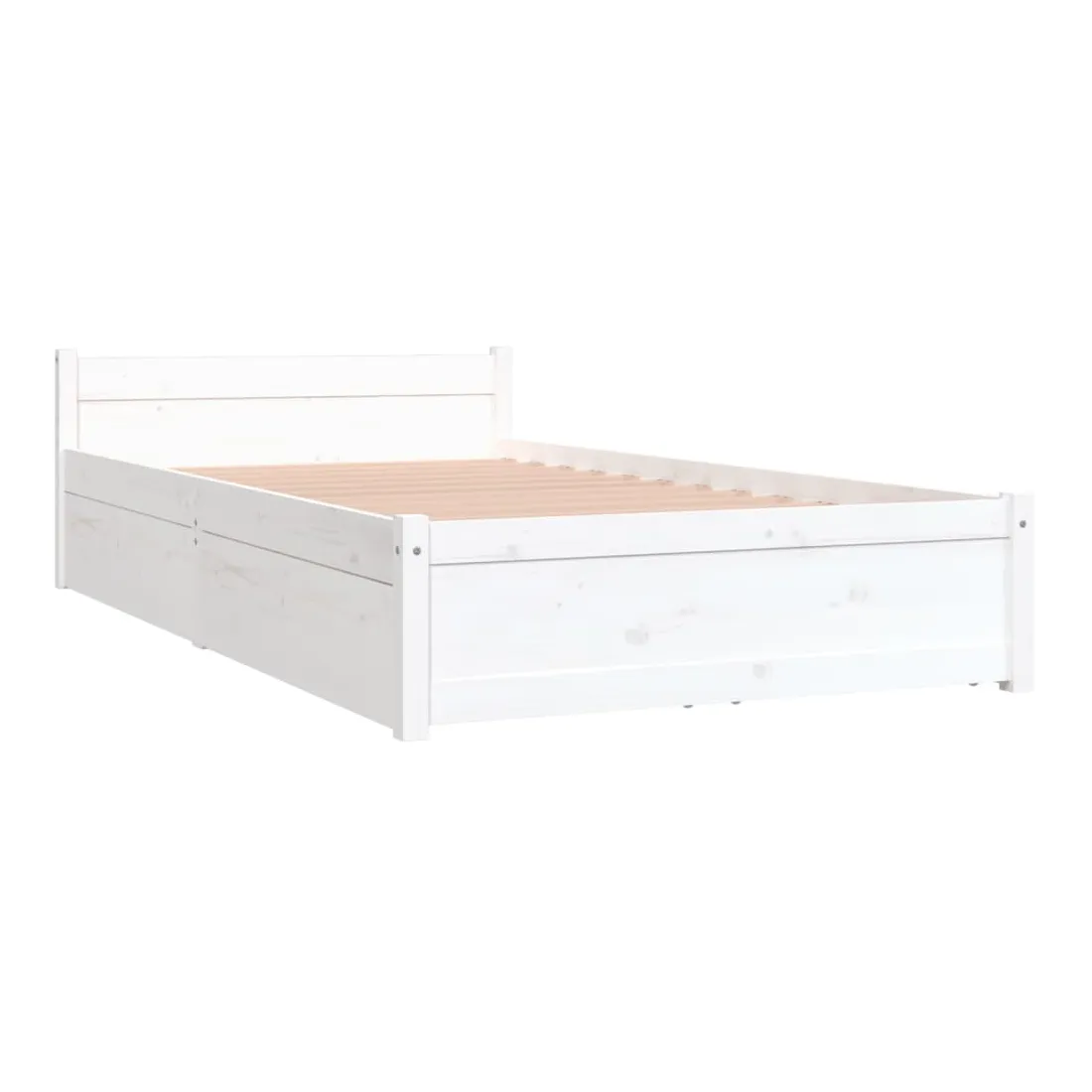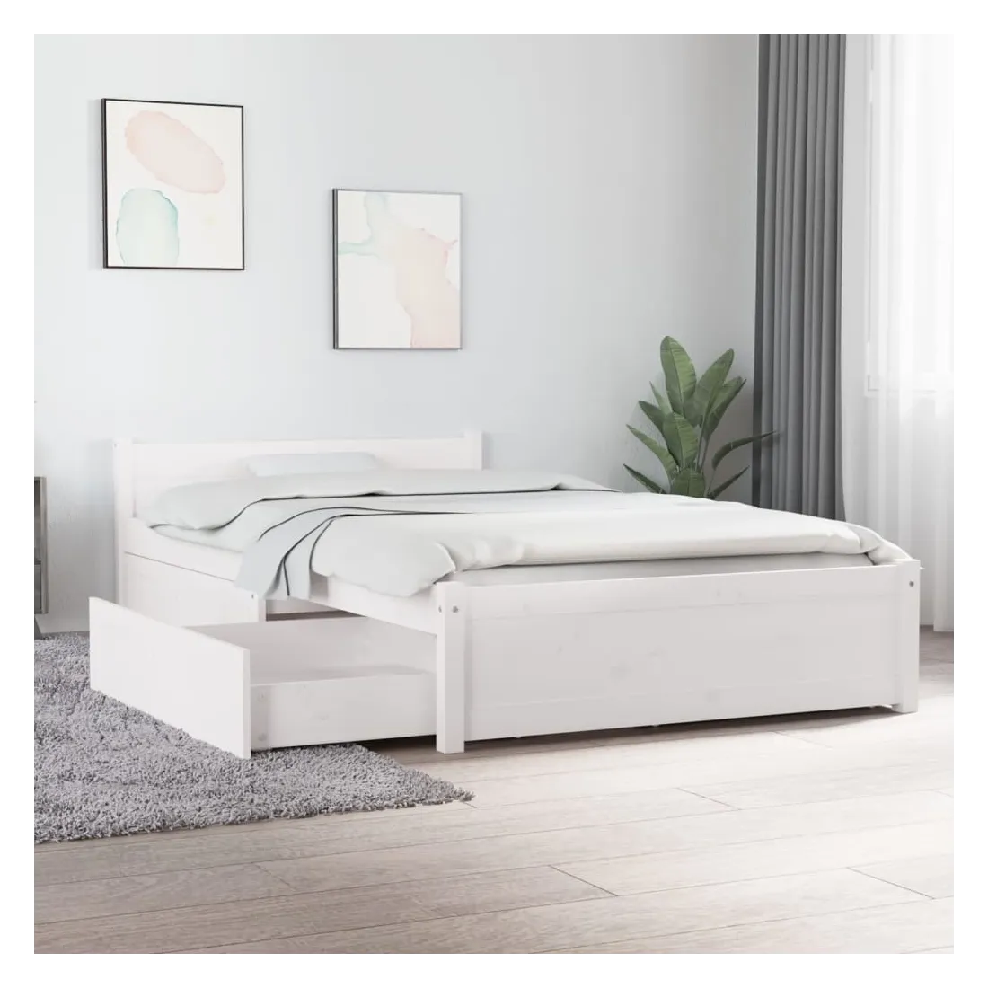 Avec un design simple mais intemporel, ce cadre de lit en bois sera un supplément vraiment pratique et décoratif à votre chambre à coucher. Bois de pin massif : le bois de pin massif est un matériau naturel magnifique. Le bois de pin a un grain droit et les nœuds donnent au matériau son aspect caractéristique et rustique.Lattes robustes : les lattes de contreplaqué assurent une bonne répartition du poids, garantissant que le matelas reste en place à chaque torsion de votre corps pendant le sommeil.Fonction de rangement : les tiroirs de lit inclus offrent suffisamment d'espace de rangement pour ranger vos articles essentiels, gardant votre pièce propre et bien rangée. Remarque :La livraison comprend uniquement le cadre de lit. Les matelas ne sont pas inclus. Vous pouvez consulter notre boutique pour trouver les matelas assortis.Ce cadre de lit convient à un matelas mesurant 100 x 200 cm.