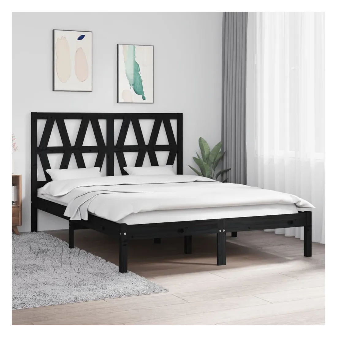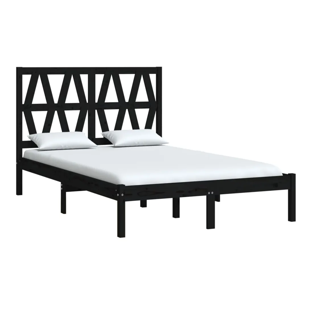 Cadre de lit sans matelas noir bois massif 140x190 cm
