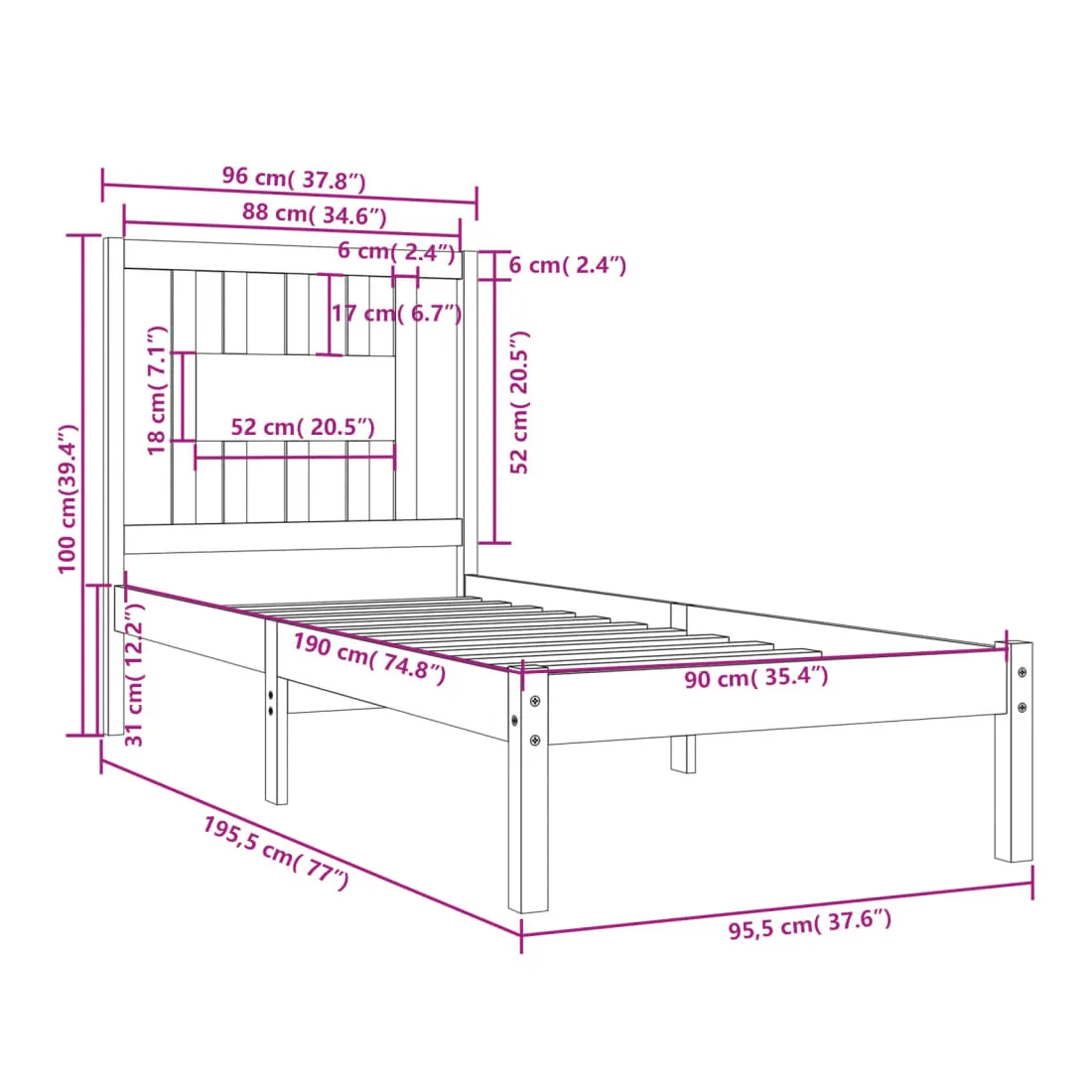 Quoi de mieux que de profiter d'une bonne nuit de sommeil à la fin d'une journée bien remplie ? Ce cadre de lit en bois classique est le choix parfait pour votre lit et la première chose que vous voulez vous détendre après une longue journée. Bois de pin massif : le bois de pin massif est un matériau naturel magnifique. Le bois de pin a un grain droit et les nœuds donnent au matériau son aspect caractéristique et rustique.Lattes pour un soutien supplémentaire : les lattes offrent un soutien supplémentaire à votre lit. Elles prolongent la durée de vie de votre matelas en absorbant la majeure partie du stress et du poids sur le lit.Tête de lit pratique : la tête de lit offre un soutien supplémentaire, augmentant le niveau de confort. En outre, elle peut maintenir vos oreillers en place pour un meilleur sommeil. Bon à savoir :La livraison comprend uniquement un cadre de lit. Le matelas n'est pas inclus. Vous pouvez consulter notre boutique pour trouver les matelas assortis.Certaines pièces de tête de lit sont emballées dans les cartons du cadre de lit en raison du manque d’espace.Ce cadre de lit convient à un matelas mesurant 90 x 190 cm (simple).