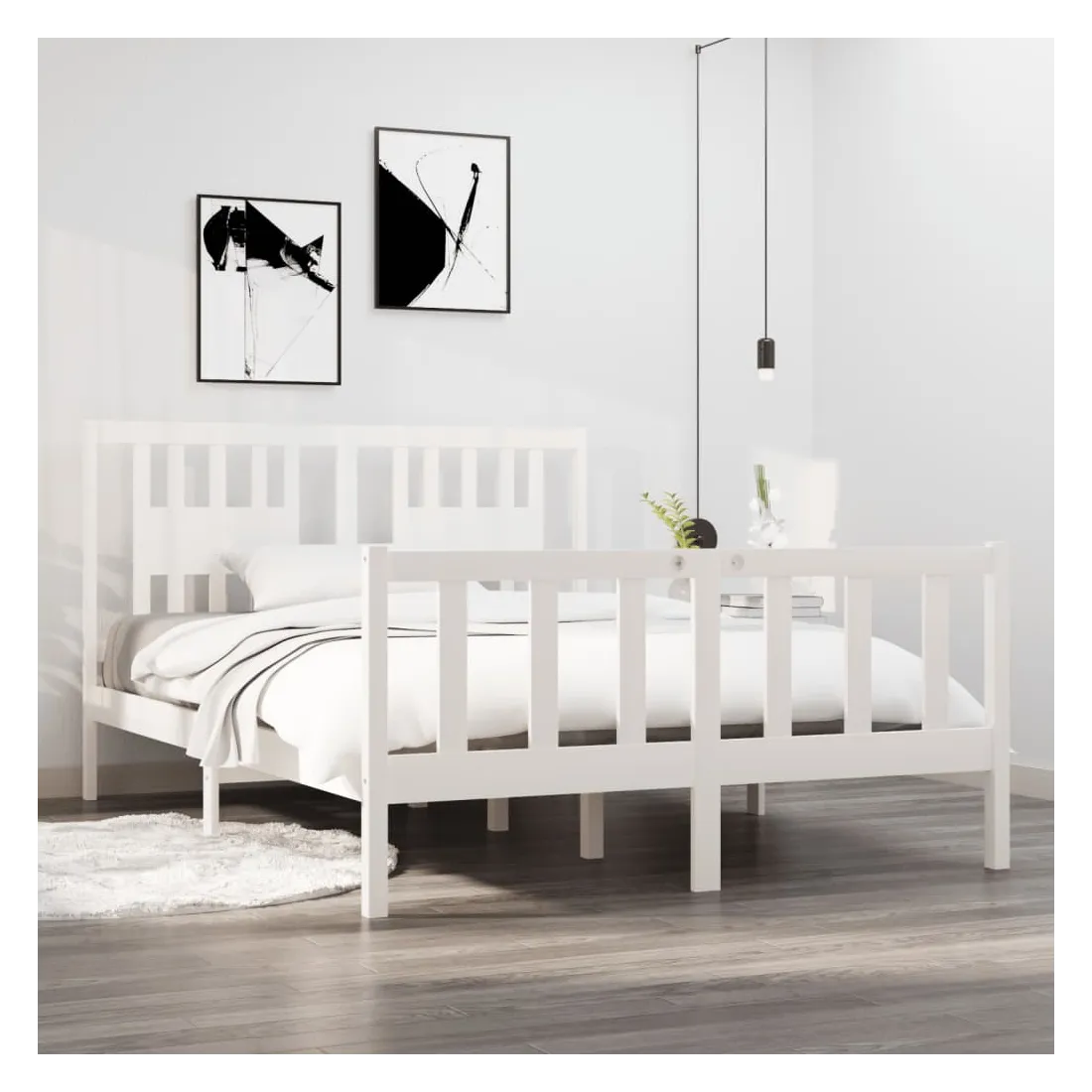Cadre de lit sans matelas blanc 135x190 cm bois massif