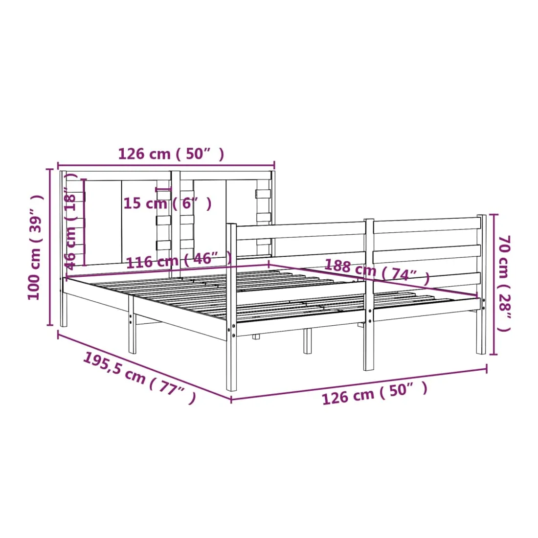 • Dimensions du cadre de lit : 195,5 x 126 x 70 cm (L x l x H)