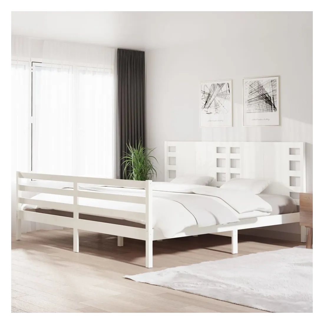 Prenez le chemin moderne vers votre chambre à coucher cool avec ce cadre de lit en bois ! Il constitue un supplément pratique et décoratif à votre intérieur. Bois de pin massif : le bois de pin massif est un matériau naturel magnifique. Le bois de pin a un grain droit et les nœuds donnent au matériau son aspect caractéristique et rustique.Cadre robuste et stable : le cadre en bois assure robustesse et stabilité.Tête de lit confortable : la tête de lit classique vous permet de vous reposer confortablement lorsque vous lisez ou regardez un film.Design accrocheur : la conception de la tête et du pied de lit est décorative et pratique. Il ajoute un style et un confort uniques. Bon à savoir :La livraison comprend uniquement un cadre de lit. Le matelas n'est pas inclus. Vous pouvez consulter notre boutique pour trouver les matelas assortis.Certaines pièces de tête de lit sont emballées dans les cartons du cadre de lit en raison du manque d’espace.Ce cadre de lit convient à un matelas mesurant 200 x 200 cm.