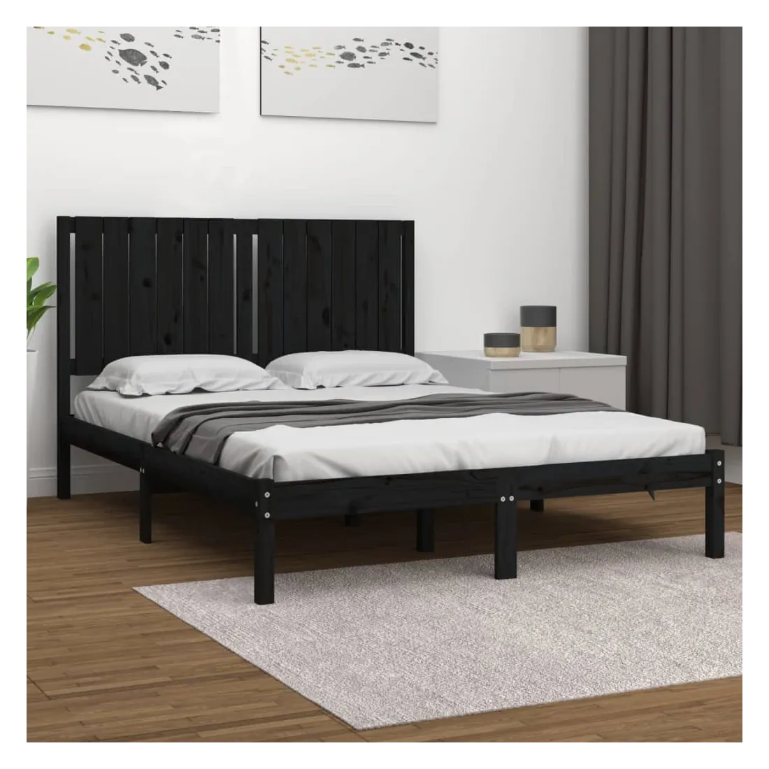 Cadre de lit sans matelas noir 140x190 cm bois de pin massif
