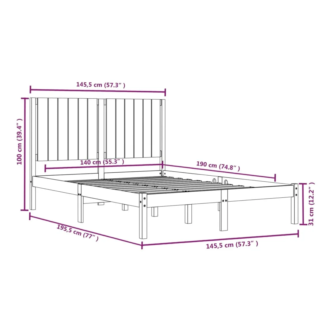 • Dimensions du cadre de lit : 195,5 x 145,5 x 31 cm (L x l x H)
