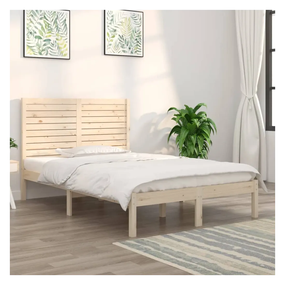 Avec un design simple mais intemporel, ce cadre de lit en bois sera un supplément vraiment pratique et décoratif à votre chambre à coucher. Bois de pin massif : le bois de pin massif est un matériau naturel magnifique. Le bois de pin a un grain droit et les nœuds donnent au matériau son aspect caractéristique et rustique.Cadre robuste et stable : les cadres de lit en bois en bois assurent robustesse et stabilité.Soutien confortable : la tête de lit vous offre un excellent soutien dorsal lorsque vous êtes assis au lit pour lire ou regarder des films.Design intemporel : la couleur et le design du sommier peuvent s'assortir facilement avec votre intérieur. Bon à savoir :Le matelas n'est pas inclus. Vous pouvez consulter notre boutique pour trouver les matelas assortis.Certaines pièces de tête de lit sont emballées dans les cartons du cadre de lit en raison du manque d’espace.Ce cadre de lit convient à un matelas mesurant 135 x 190 cm (double).