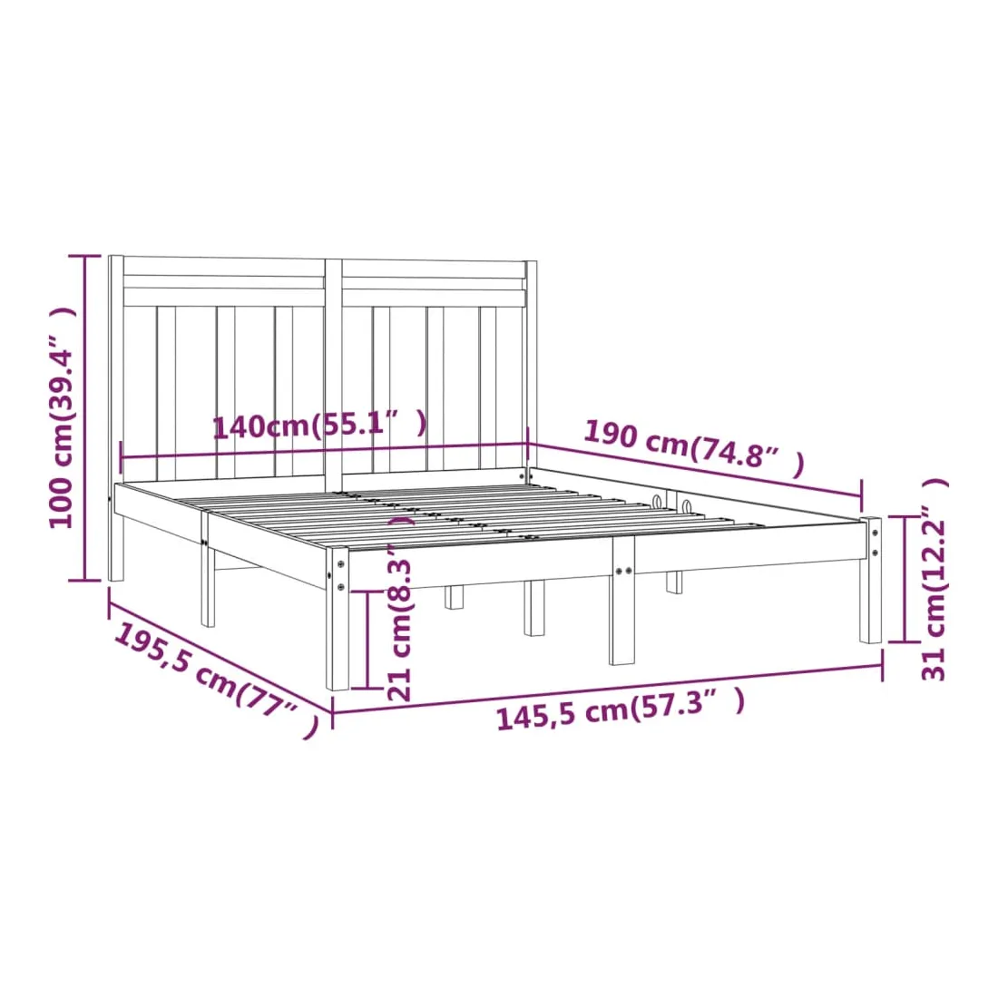 - Dimensions du cadre de lit : 195,5 x 145,5 x 31 cm (L x l x H)
