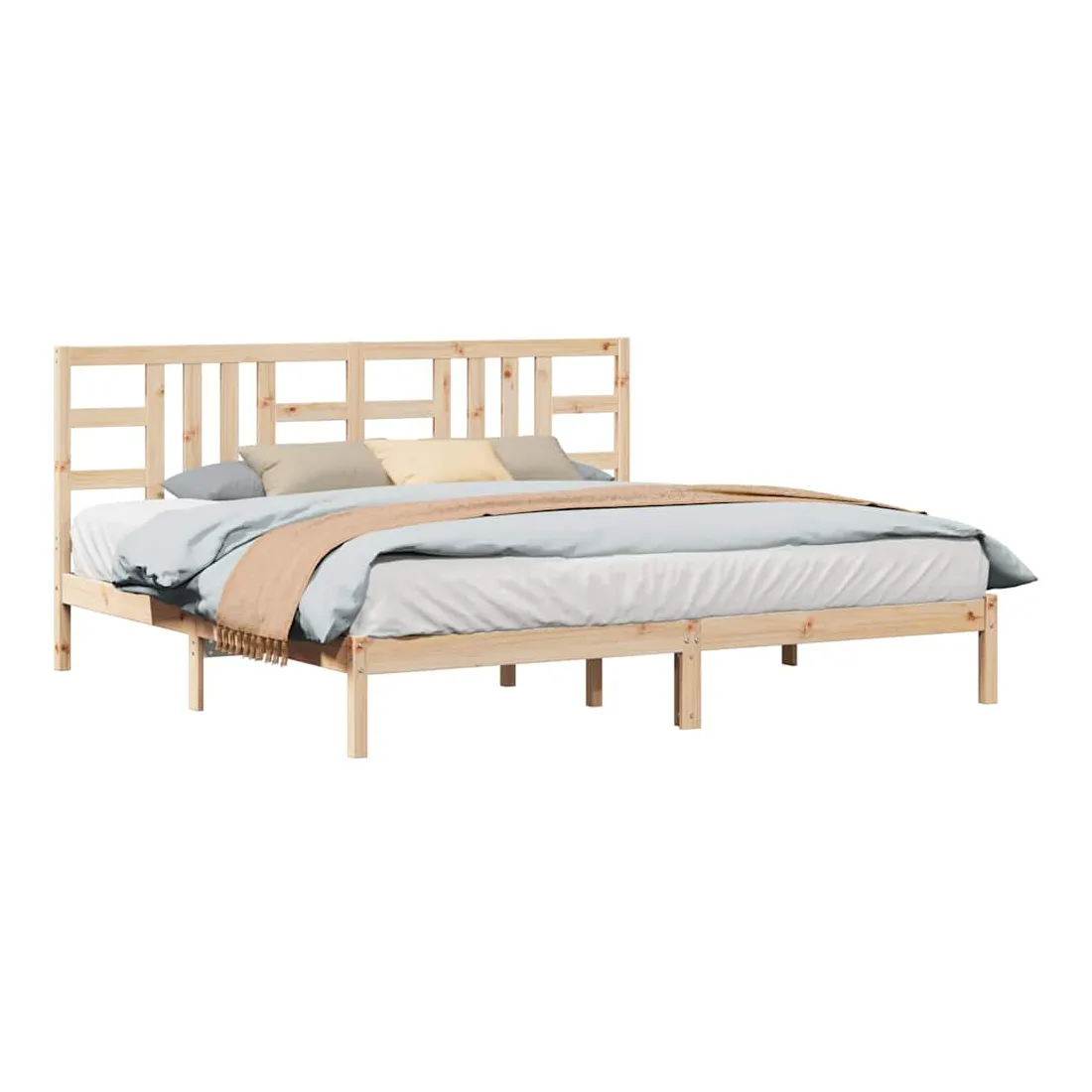 Ce cadre de lit classique, au design simple mais intemporel, est destiné à apporter une touche pratique et décorative à votre chambre à coucher. Bois de pin massif : le bois de pin massif est un matériau naturellement beau. Le bois de pin a un grain droit et les nœuds donnent au matériau son aspect caractéristique et rustique.Lattes de contreplaqué : les lattes de contreplaqué assurent une bonne répartition du poids, garantissant que le matelas reste en place à chaque torsion de votre corps pendant le sommeil.Expérience confortable : combinez ce cadre de lit et cette tête de lit en bois pour profiter pleinement de vos soirées. Qu'il s'agisse de vous reposer contre la tête de lit pour lire ou simplement faire un doux rêve, ce lit en bois saura répondre à vos besoins. Remarque :Le matelas n'est pas inclus. Vous pouvez consulter notre boutique pour trouver les matelas assortis.Ce cadre de lit convient à un matelas mesurant 200 x 200 cm.