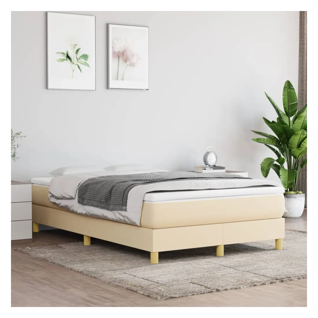 Cadre de lit à ressorts crème 120x200 cm tissu
