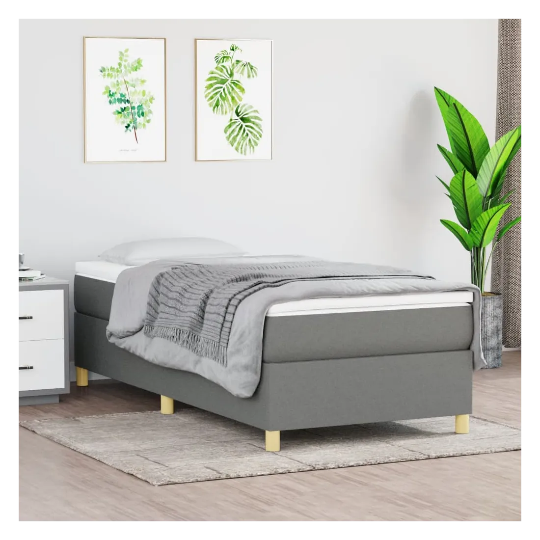 Obtenez une meilleure nuit de sommeil reposante grâce à ce cadre de lit à ressorts ! Il est un supplément accueillant à toute chambre à coucher. Tissu durable : le tissu présente un aspect simple et épuré, et il est respirant et durable.Pieds de soutien : le lit est soutenu par des pieds robustes, qui assurent sa stabilité, sa sécurité et sa fermeté.Lattes de contreplaqué : les lattes de contreplaqué assurent une bonne répartition du poids, garantissant que le matelas reste en place à chaque torsion de votre corps pendant le sommeil. Bon à savoir :Un matelas n'est pas inclus avec ce lit. Nous offrons une sélection variée de matelas. Vous pouvez consulter notre boutique pour trouver un matelas assorti.