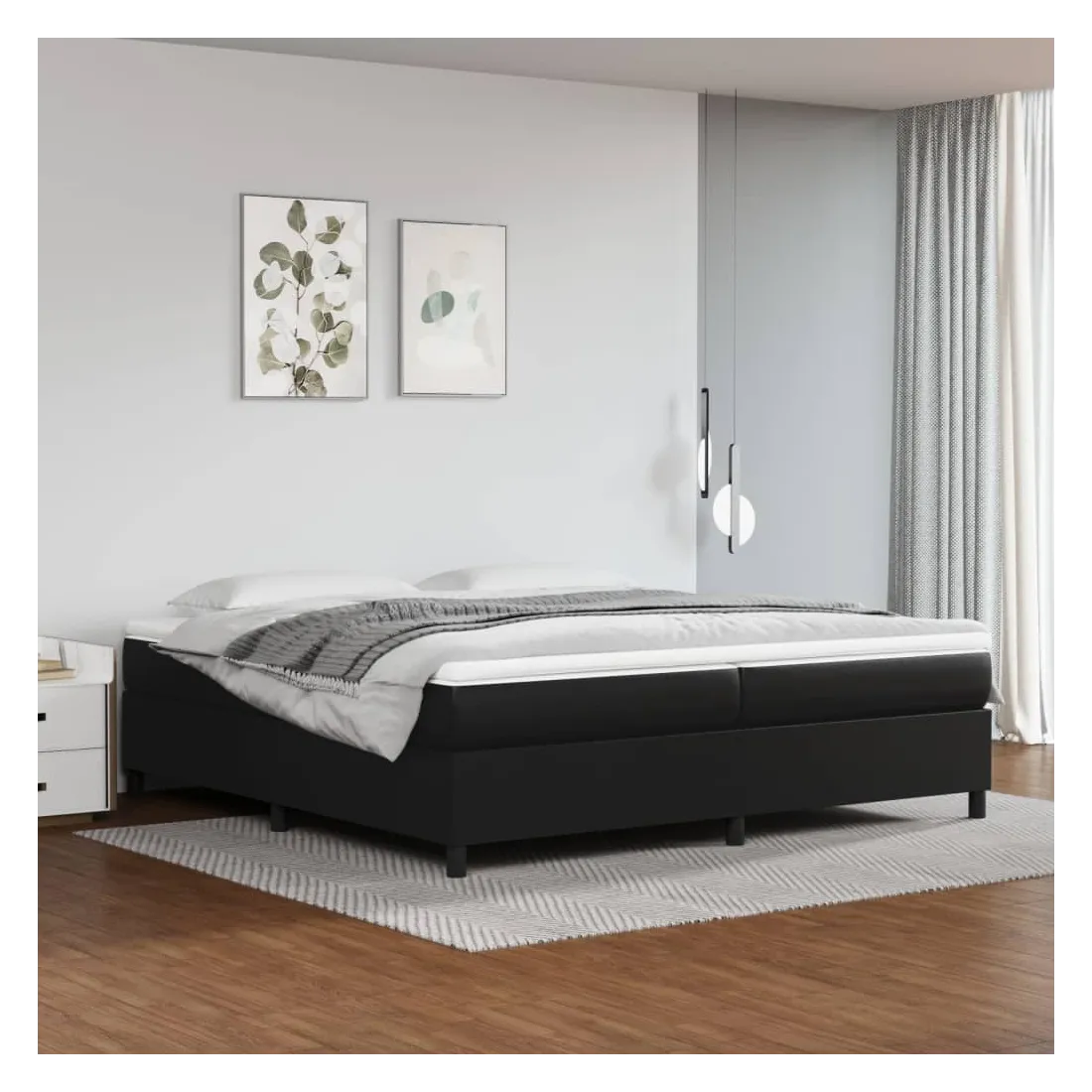 Cadre de lit à ressorts noir 200x200 cm similicuir