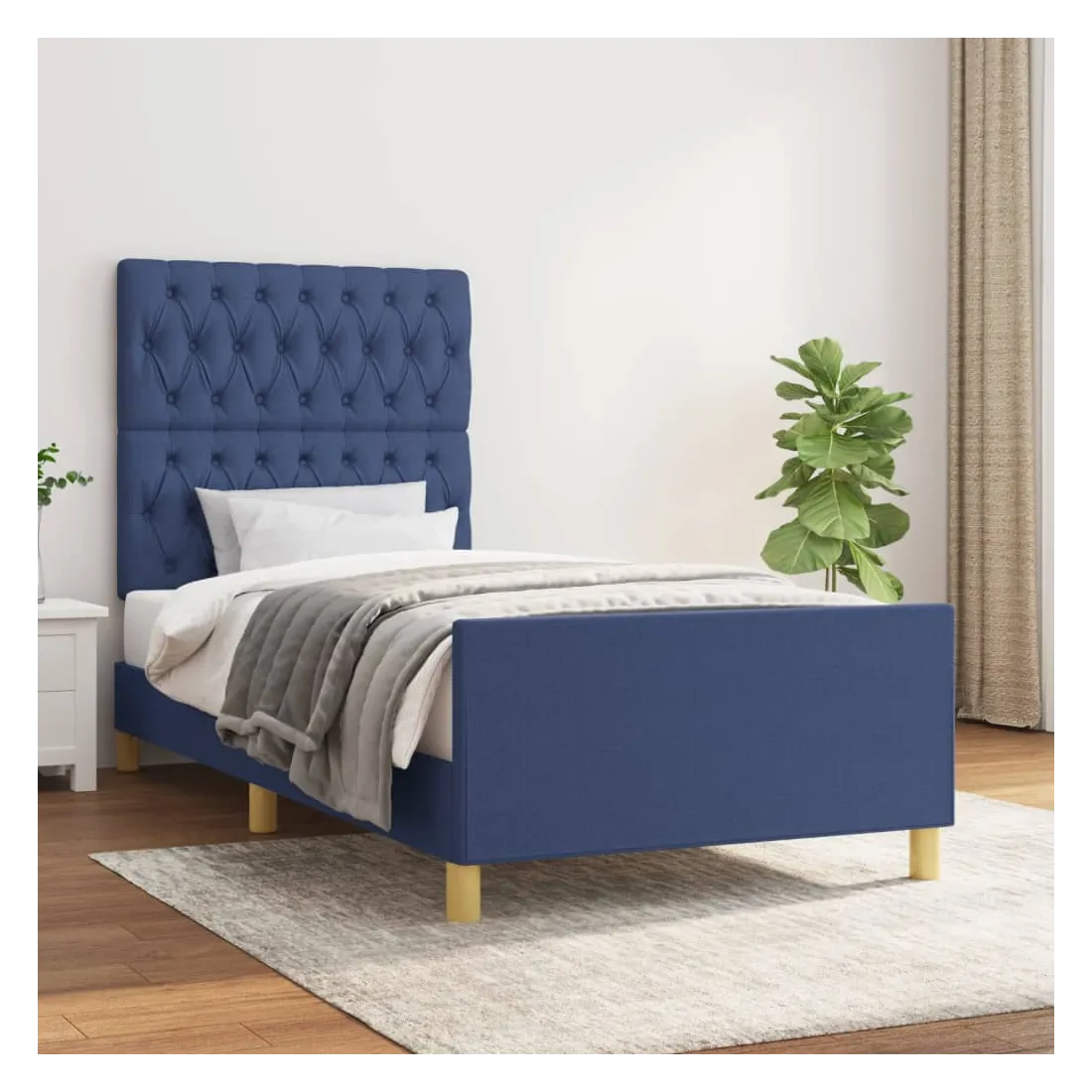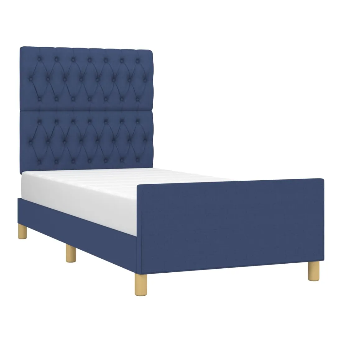 Cadre de lit sans matelas bleu 90x190 cm tissu