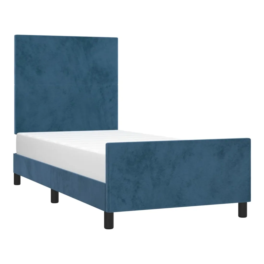 Cadre de lit sans matelas bleu foncé 90x190 cm velours