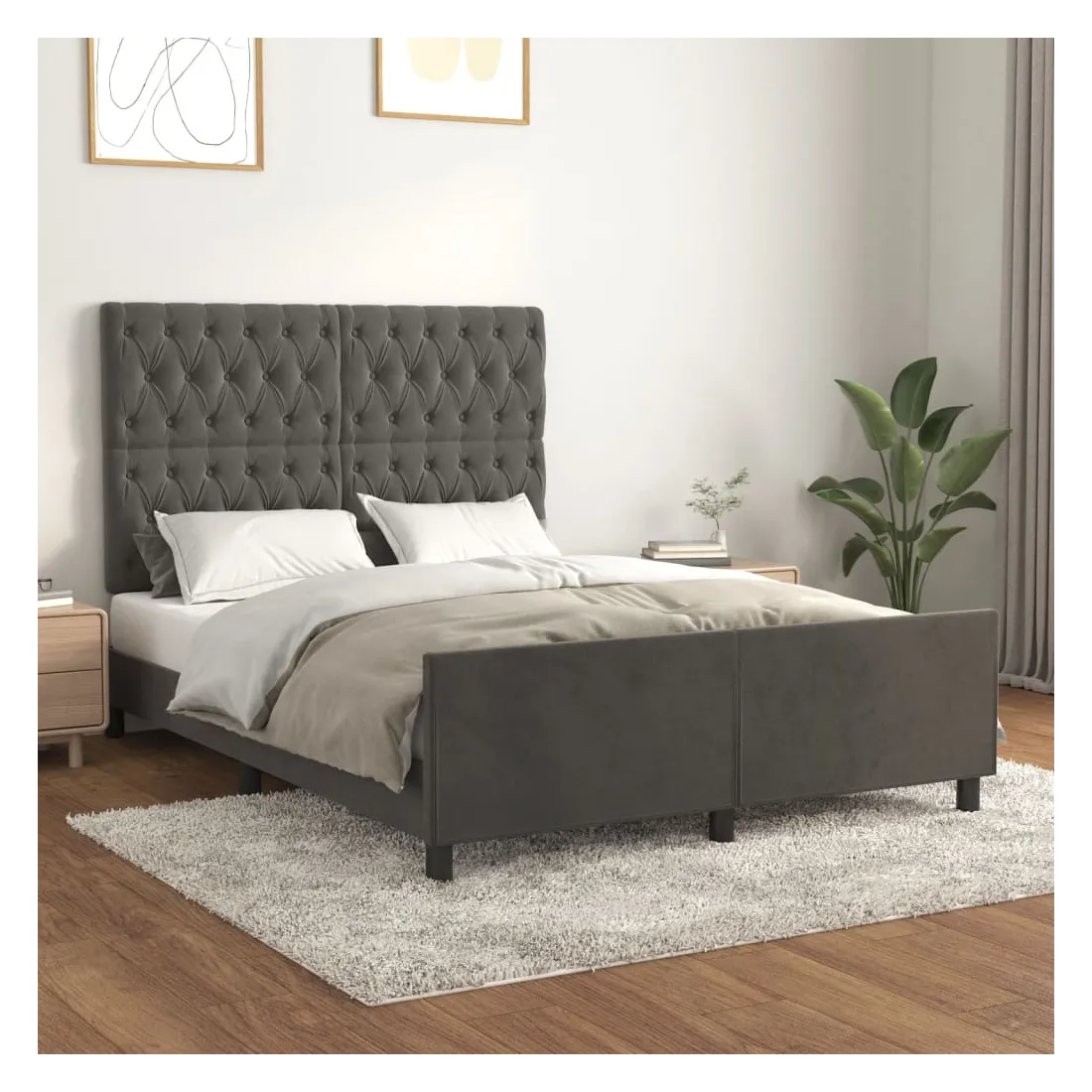Cadre de lit sans matelas gris foncé 140x190 cm velours