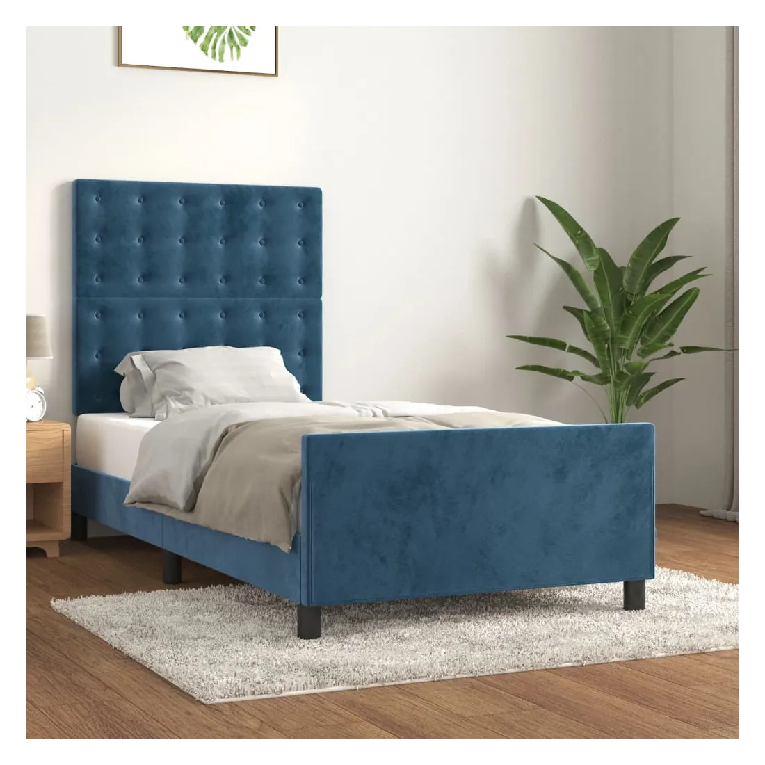 Obtenez une meilleure nuit de sommeil reposante grâce à ce cadre de lit avec tête de lit ! Il est un supplément accueillant à toute chambre à coucher. Velours doux : le velours est un tissu doux et luxueux qui se reconnaît à son tas dense de fibres uniformément coupées qui ont une touche lisse. Le tissu en velours présente un toucher doux distinctif, ce qui le rend confortable au toucher.Hauteur réglable : la tête de lit est réglable en hauteur selon vos préférences.Pieds de soutien : le lit est soutenu par des pieds robustes, qui assurent sa stabilité, sa sécurité et sa fermeté.Lattes de contreplaqué : les lattes de contreplaqué assurent une bonne répartition du poids, garantissant que le matelas reste en place à chaque torsion de votre corps pendant le sommeil.Excellent soutien : la tête de lit vous offre un excellent soutien du dos lorsque vous êtes assis dans votre lit pour lire ou regarder la télévision. Remarque :La livraison comprend uniquement un cadre de lit. Le matelas n'est pas inclus. Vous pouvez consulter notre boutique pour trouver les matelas assortis.Chaque produit est livré avec un manuel de montage dans la boîte pour un montage facile.