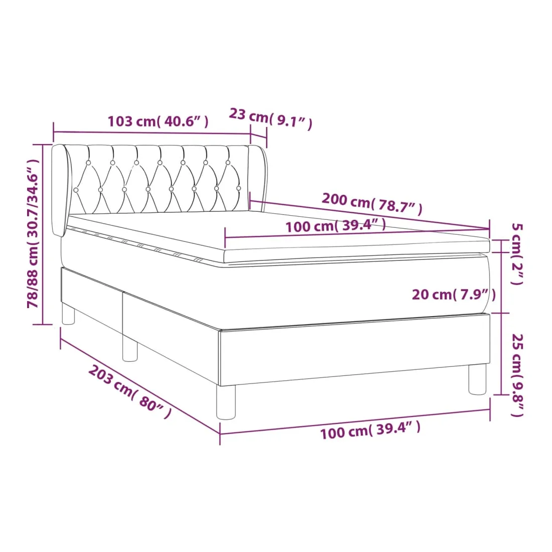 • Dimensions : 203 x 103 x 78/88 cm (L x l x H)