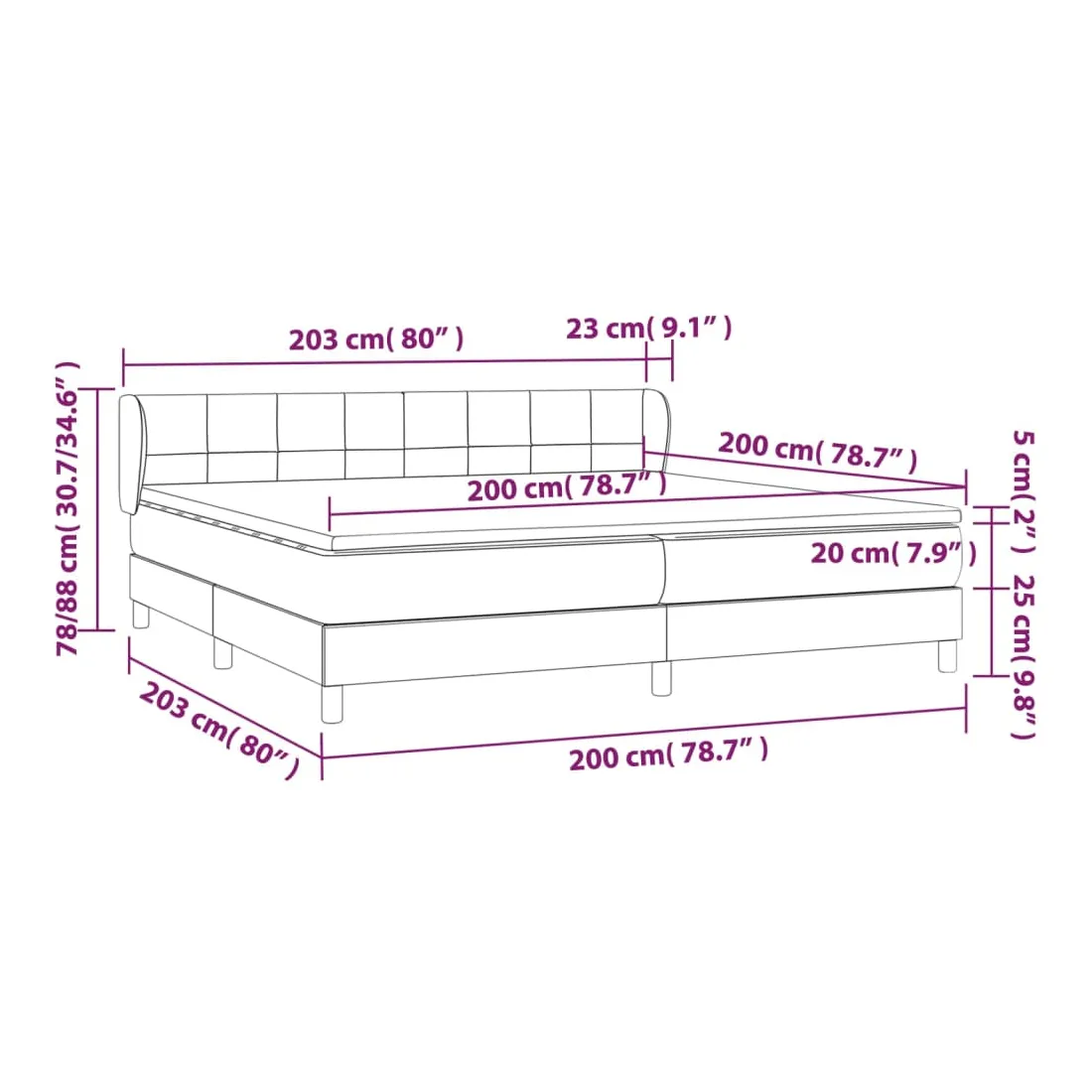 Utilisez ce lit à sommier pour profiter d'une nuit de sommeil réparatrice ! Il vous offre une relaxation maximale et un sommeil agréable. Velours doux : le velours est un tissu doux et luxueux qui se reconnaît à son tas dense de fibres uniformément coupées qui ont une touche lisse. Le tissu en velours présente un toucher doux distinctif, ce qui le rend confortable au toucher.Tête de lit pratique : la tête de lit est réglable en hauteur selon vos préférences. La tête de lit vous offre un excellent soutien du dos lorsque vous êtes assis dans votre lit pour lire ou regarder la télévision.Matelas à ressorts ensachés : le ressort ensaché individuel intégré est connu pour sa très haute qualité tout en assurant un haut niveau de durabilité et d'adaptabilité. Il peut absorber efficacement le bruit et les chocs causés par les sauts et les rotations.Support moyen-dur : ce matelas de lit offre une stabilité accrue et juste le niveau de fermeté sans sacrifier le confort. Il est donc idéal pour les personnes qui dorment sur le dos ou sur le ventre.Protège-matelas doux pour la peau : le protège-matelas est recouvert d'un tissu résistant et doux pour la peau, ce qui le rend souple et confortable. Remarque :Pour des raisons d'hygiène, le matelas ne peut pas être retourné si l'emballage est retiré ou ouvert.Chaque produit est livré avec un manuel de montage dans la boîte pour un montage facile.