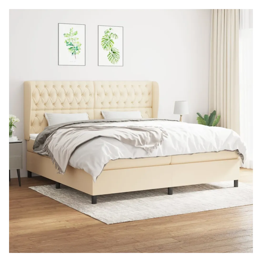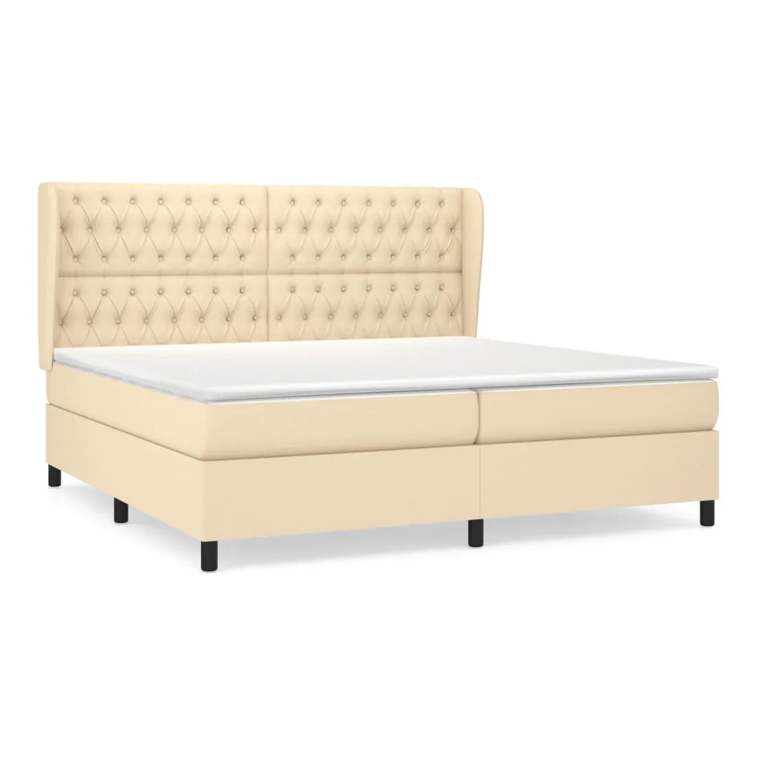 Sommier à lattes de lit avec matelas Crème 200x200 cm Tissu